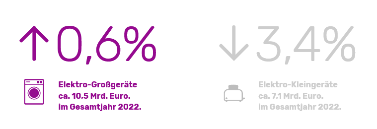 Im Bereich der Elektro-Hausgeräte blieb der Umsatz mit insgesamt 17,6 Mrd. EUR nahezu stabil (-1%). Das Umsatzplus bei Elektro-Großgeräten betrug im Gesamtjahr 0,6% auf knapp 10,5 Mrd. EUR. Bei den Elektro-Kleingeräten ging der Umsatz um 3,4% auf 7,1 Mrd. EUR zurück.
