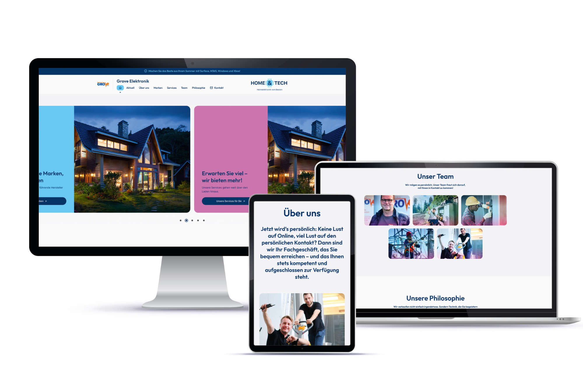 Das Paket S umfasst eine Basis-Homepage mit voreingestellten Rubriken und die Möglichkeit, Texte teilweise zu individualisieren. Kunden, die sich für das Paket M entscheiden, können ihre Homepage noch stärker selbst gestalten und zudem Extra-Seiten einrichten, die komplett individualisierbar sind. Home & Tech unterstützt zudem bei der Ladenausstattung, inklusive der Beschriftung von Schaufenstern und Pkw, und stellt Vorlagen für Briefpapier und Visitenkarten zur Verfügung.