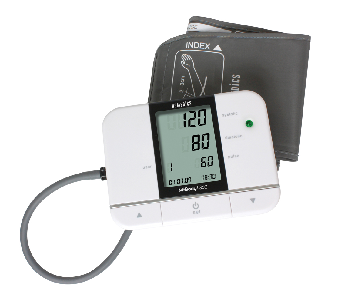 Das HoMedics Blutdruckmessgerät 360BP MiBody ist neben einer Personenwaage und einem Schrittzähler Teil des 360-Systems. Das System eignet sich zur individuellen Selbstkontrolle und motiviert zur Bewegung.