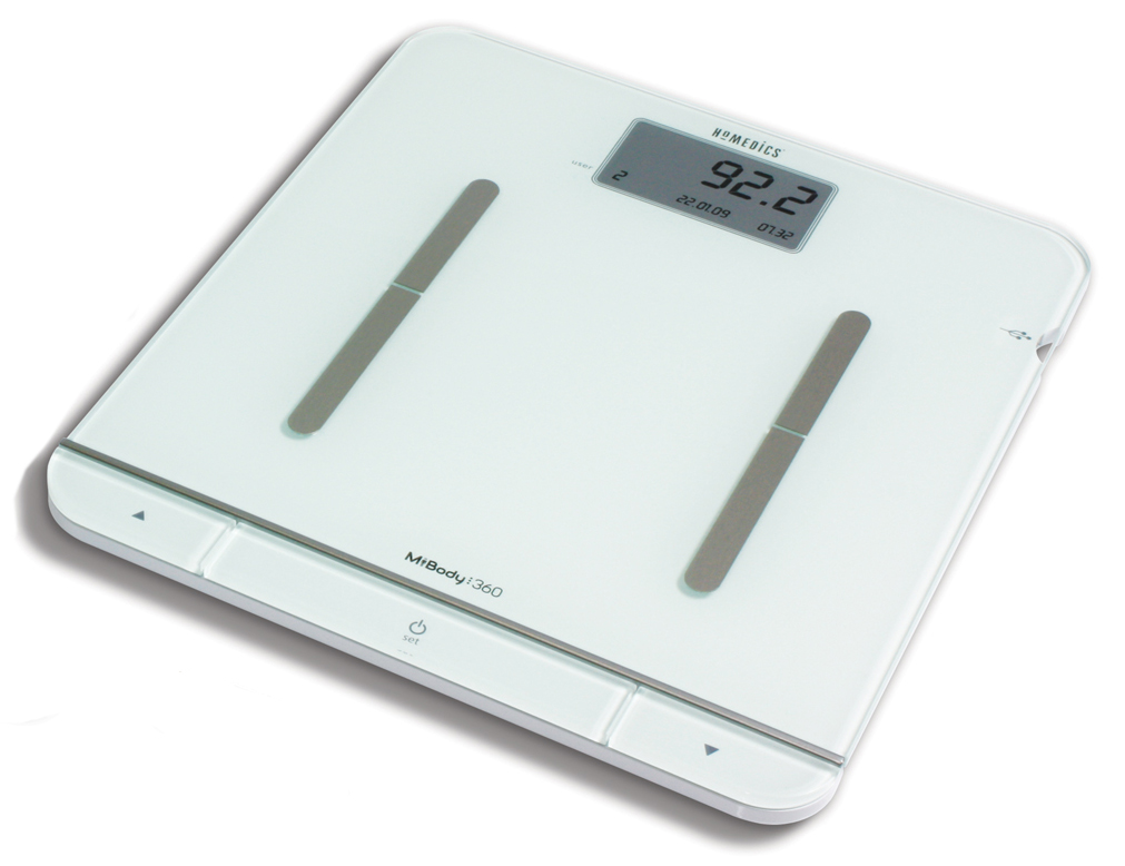 Die HoMedics Körperanalysewaage 360SC MiBody ist neben einem Blutdruckmessgerät und einem Schrittzähler Teil des 360-Systems. Das System eignet sich zur individuellen Selbstkontrolle und motiviert zur Bewegung.