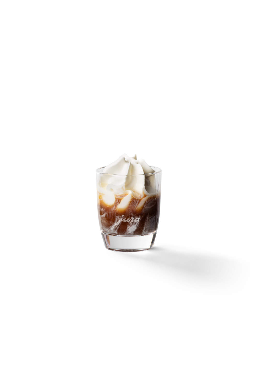 - Bereiten Sie die Schlagsahne wie gewohnt zu und geben Sie sie in ein Espressoglas, bis dieses halb voll ist.