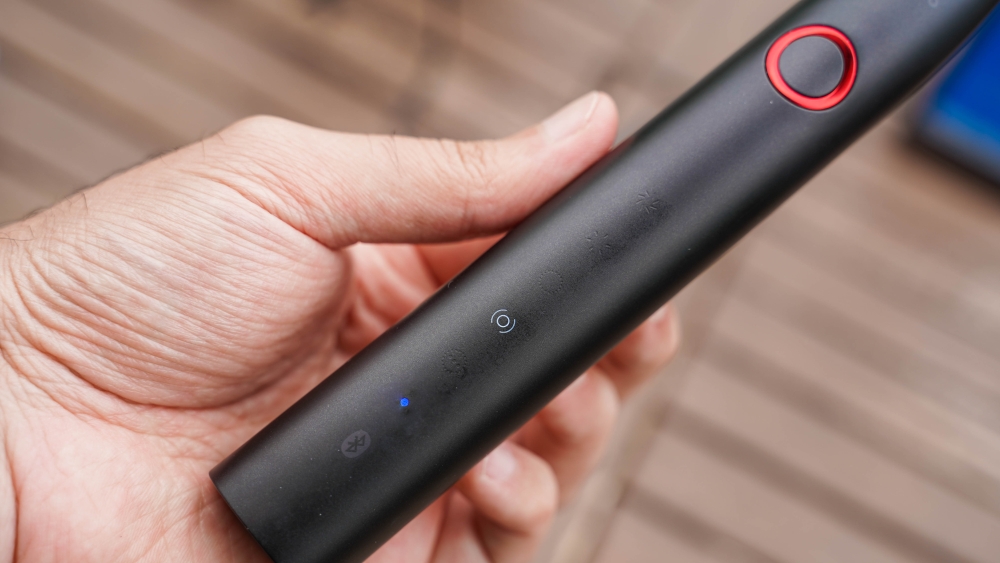 Die Huawei Lebooo Smart Sonic Zahnbürste selbst kommt wahlweise in schwarz oder weiß und fühlt sich in der Hand sehr wertig an mit einem ordentlichen Gewicht. Mit einer einzigen Taste wechselt man zwischen den vier unterschiedlichen Modi, die jeweils ein eigenes Vibrationsmuster haben. Je nachdem was man verwendet leuchtet die entsprechende LED auf, was generell sehr praktisch ist. Die vier Modi sind der Reinigungsmodus, der Aufhellungs- bzw. Weißmodus, der empfindliche Modus und der Pflegemodus. Diese sind jeweils auf einer Vibrationsstärke voreingestellt. In der App lässt sich diese auf vier Stufen anpassen. In der Praxis bringen diese Modi sehr gute Ergebnisse und ich bin beeindruckt wie gut sich die Pinselhaare bewegen. So sehr, dass es deutlich sichtbar ist, was die Zahnbürste gerade macht. Bei vielen anderen günstigen Zahnbürsten tut sich da meist nicht viel.