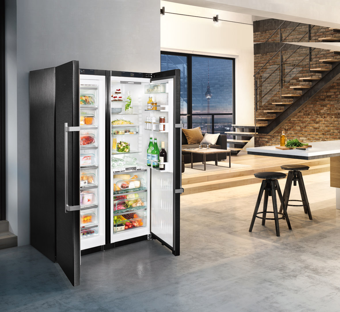 Bei Liebherr kommt bei der Design-Konzeption der klassische Grundsatz „Design follows function“ zum Tragen. Mit elegantem und zeitlosem Design erfüllen sowohl die 70cm Breite CBNPes 5758 als auch die großzügige Side-by-Side SBSes 8673 höchste ästhetische Ansprüche. Die Designqualität zeigt sich hierbei in vielen Details: von der Edelstahl-Verarbeitung über die Auswahl hochwertiger Materialien bis zur Ausstattung des Innenraums und der Innentür mit GlassLine. Der neue Hebelgriff gewährleistet durch die integrierte Öffnungsmechanik bequemes Türöffnen. Das innovative LED-Beleuchtungskonzept garantiert eine homogene Ausleuchtung.