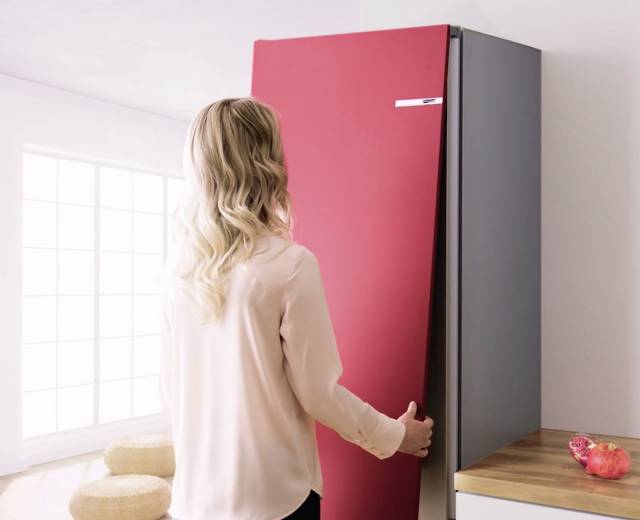 Mit der Vario Style Kühl-Gefrier-Kombination hat Bosch 2017 eine Weltneuheit vorgestellt: Der erste Kühlschrank, der seine Farbe ändern kann, ist ein Schritt im Hinblick auf eine individuelle Gestaltung des Küchenumfelds und Ausdruck des persönlichen Stils. Dank eines cleveren Befestigungssystems mit verdeckt angebrachten Halterungen und Magneten lassen sich die Türfronten im Handumdrehen und ganz ohne Werkzeug austauschen. Entsprechend ihrer jeweiligen Lebenssituation und ihrem Geschmack können die Bewohner den Kühlschrank so zu ihrem persönlichen Designobjekt machen. Dabei wählen sie aus 19 modernen Farben wie Espressobraun, Kirschrot, Aqua oder Limettengrün ihre bevorzugte(n) Variante(n) aus.