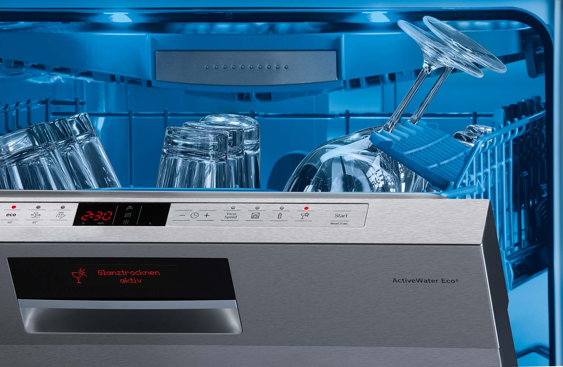 Bei so spektakulären Spareffekten geraten die weiteren Eigenschaften des ActiveWater Eco² leicht ins Hintertreffen. Allen voran die neue Sonderfunktion „Glanztrocknen“ durch das eingesetzte Zeolith: Gläser und Kunststoffteile kommen nicht nur trocken, sondern auch hochglänzend und frei von Tropfen oder Kalkflecken aus der Maschine. Weiterhin verfügt das Gerät über zahlreiche weitere komfortable Funktionen wie VarioSpeed mit bis zu 50 Prozent Zeitersparnis, die Zuschaltung der extra reinigungsstarken IntensivZone oder das Hygieneprogramm für optimale, hygienische Reinigungsleistung. Die kontinuierliche Anpassung des Sprühdrucks durch die neue Hauptpumpe sorgt zudem für bessere Reinigungsergebnisse in kürzerer Zeit. Angenehmer Nebeneffekt ist eine höhere Laufruhe und damit weniger Geräuschemission. Und das formschöne Design mit übersichtlichem Display, der blauen Emotion Light Innenbeleuchtung und intuitiver Touch Control Bedienlogik macht ohnehin in jeder Küche eine gute Figur.