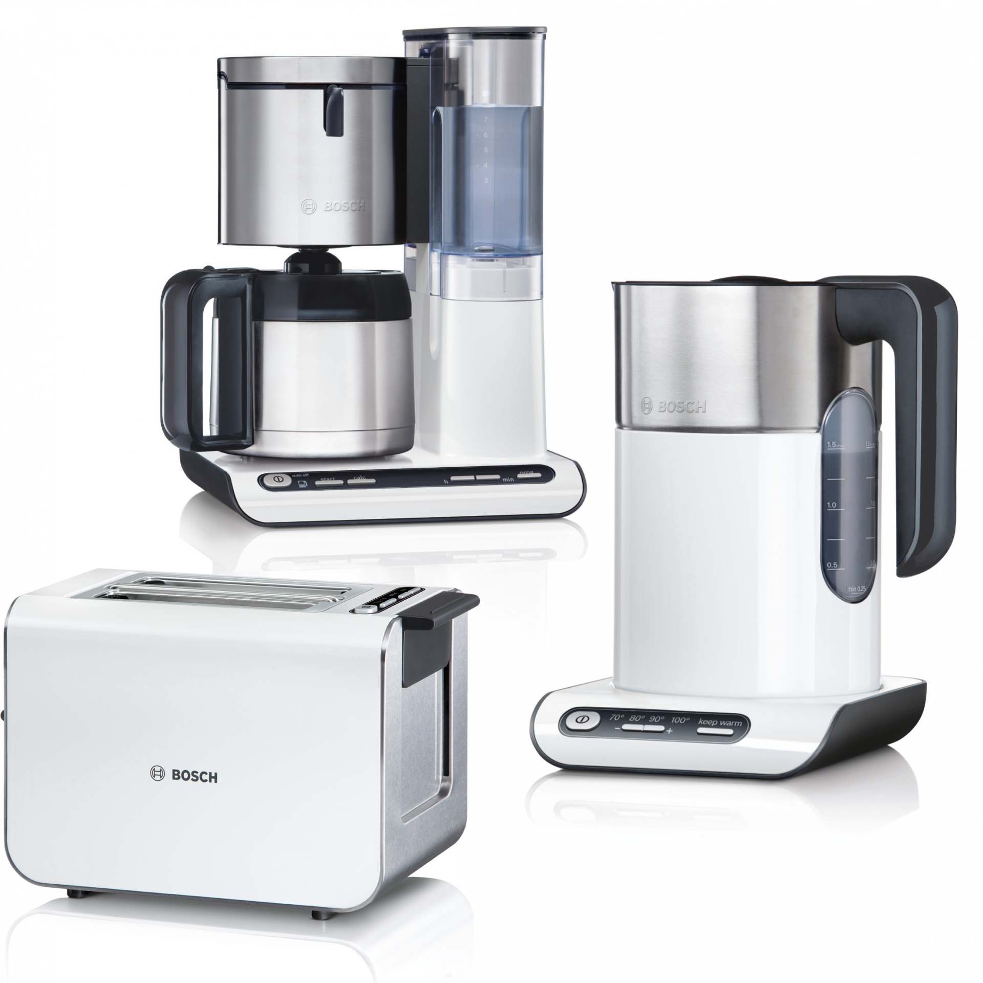 Wird es ein schöner Tag? In jedem Fall wird es ein schöner Morgen: mit dem neuen Styline Frühstücksset von Bosch. Die Design-Serie umfasst Filterkaffeemaschine, Wasserkocher und Toaster und punktet neben ihrer technischen Raffinessen vor allem durch ihre Optik. Beim Anblick der hochwertigen, aufeinander abgestimmten und edel anmutenden Geräte schmeckt das Frühstück gleich doppelt so gut! Mit der Styline liefert Bosch die perfekte Rundum-Ausstattung aus einer Hand, und dabei bleibt die Qualität der Lebensmittel bei jeder Zubereitungsart erhalten.