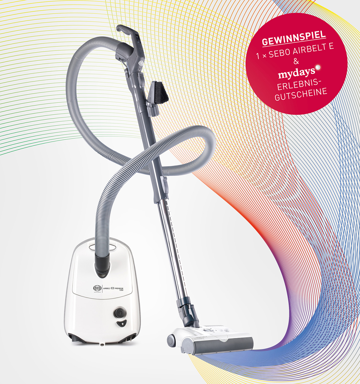 Sebo gibt auf der IFA den Startschuss für ein Erlebnis-Gewinnspiel. Vom 4. September bis 31. Dezember 2015 werden unter allen Gewinnspiel-Teilnehmern ein Sebo Airbelt E3 Premium 1200 oder spannende Erlebnisse mit „mydays“ verlost.