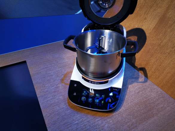 Egal, Bosch präsentierte einen Küchenhelden, den man schnell als Thermomix-Klon oder „Prep & Cook“-Nachahmer (Krups) in eine Schublade stecken könnte. Funktioniert aber nicht, denn hinter „Cookit“, eine durch und durch clevere Küchenmaschine mit Kochfunktion, stecken fünf Jahre Entwicklungsarbeit und jede Menge „MUM“-Kompetenz. So dürfte die Küchenarbeit mit „Cookit“ schneller, flexibler und vor allem heißer als beim Wettbewerb von statten gehen. Ausgestattet mit zahlreichen Zubehörteilen, verspricht Cookit beste Resultate bei jedem Gericht. Ob Raspeln, Kneten oder Rühren – mit Universalmesser, 3DRührer und Zwillings-Rührbesen gelingt die Vorbereitung schnell und präzise. Selbst das Schneiden von feinen Gemüsestreifen geht mit den Schneid- und Raspel-Scheiben leicht von der Hand. Und mit dem mitgelieferten Dampfgarzubehör können kleine und große Mengen oder sogar drei verschiedene Lebensmittel gleichzeitig schonend zubereitet werden.