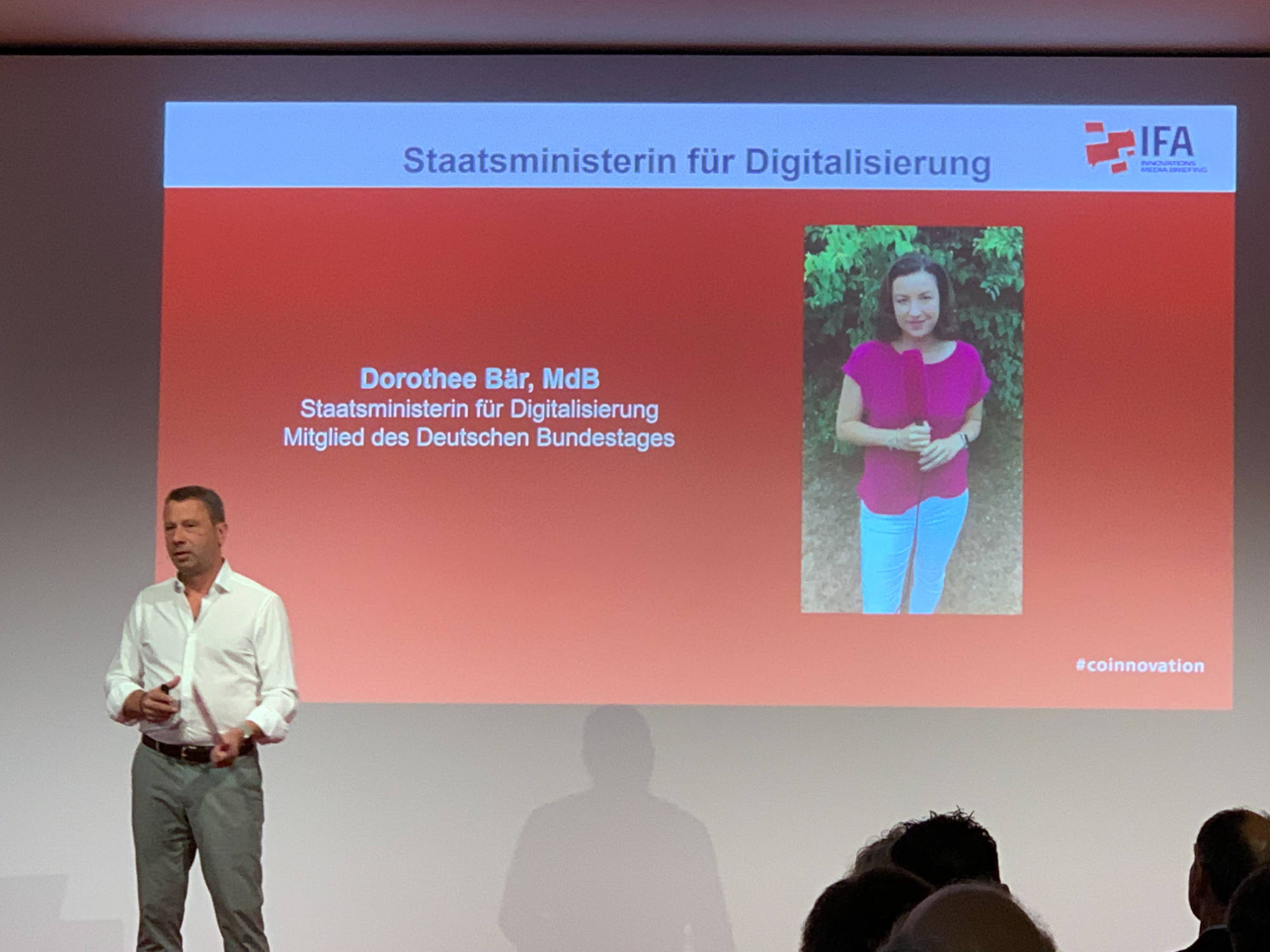 Wo die Zukunft einzieht und gehandelt wird, ist die Bundesregierung nicht mehr weit und setzt ein starkes Zeichen: Dorothee Bär, Staatsministerin für Digitalisierung, betonte in einem Videogruß die Unterstützung der Bundesregierung für die IFA: „Auf der IFA werden Trends vorgestellt, da zeigt sich, wer die Nase vorn hat.“ Und das gab es wirklich noch nie zuvor: Bär zieht während der gesamten Laufzeit der IFA mit ihrem Büro vom Kanzleramt auf das Messegelände. Die Staatsministerin freut sich auf die Chance, mit internationalen Gästen ins Gespräch zu kommen.
