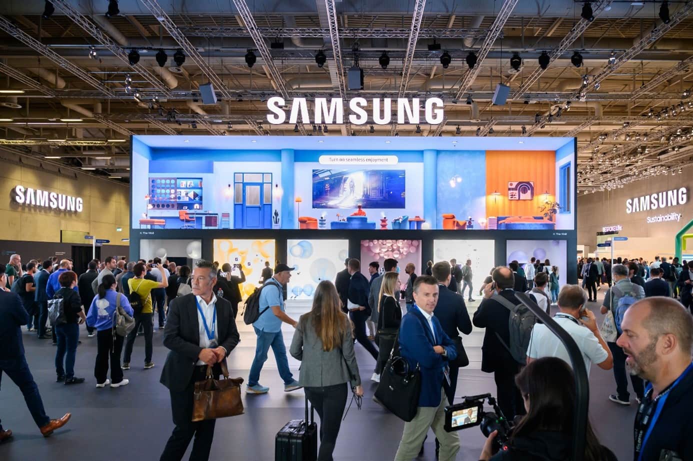 Für uns ist der Südeingang der Messe Berlin stets die erste Wahl. Natürlich weil die Hausgeräte-Hersteller vor allem in den Hallen 1 bis 6 ihre Heimat haben und nach unserem Eindruck die Unterhaltungselektronik auf der Messe endgültig hinter sich gelassen haben, weil hier die Hausgeräte mit allen fünf Sinnen erlebbar sind und aufgeladen mit reichlich Emotion informativ wie unterhaltsam in Szene gesetzt werden. Rechter Hand bespielt Samsung im Alleingang den Cube, der bereits am Eröffnungsmorgen aus allen Nähten platzte. So fühlt sich Messe, so fühlt sich die IFA an!