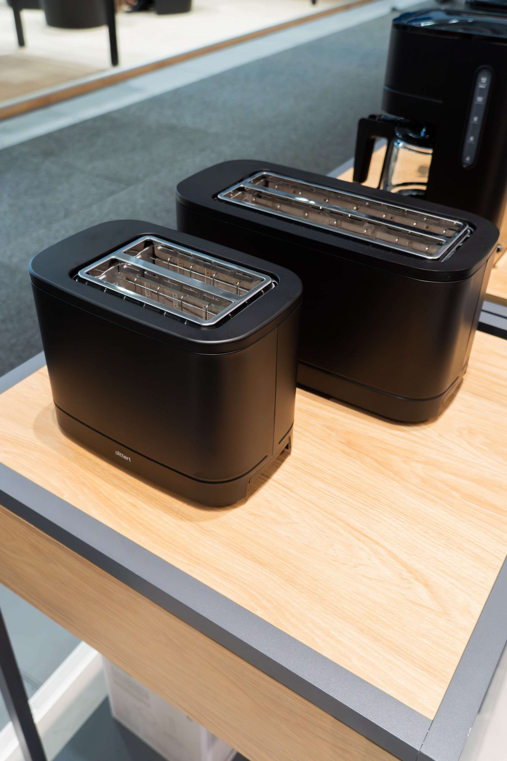 Im Zentrum des Messeauftritts standen neue Produkte, die direkt auf Anregungen des Handels zurückgehen. So stellte dittert einen Langschlitz-Toaster sowie eine Filterkaffeemaschine mit Thermoskanne vor – beide in der charakteristischen mattschwarzen Optik. Die Geräte sind ab dem ersten Quartal 2026 verfügbar und wurden bereits am Messestand in zahlreiche Sortimente aufgenommen.