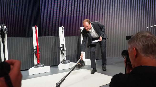 Star zum IFA-Auftakt indes war ein höchst analoges Hausgerät, das bereits im Vorfeld im Handel für „phantastische, gar euphorische Reaktionen“ (Dr. Markus Miele) geführt hat. Zur IFA präsentiert Miele (als langjähriger Marktführer bei Bodenstaubsaugern) mit dem Triflex HX1 einen Akku Handstaubsauger, made in Bielefeld, der durch sehr gute Saugeigenschaften und enorme Flexibilität punktet und der das Zeug hat, im Handel in die Lücke zu stoßen, die Dyson derzeit aufreißt.