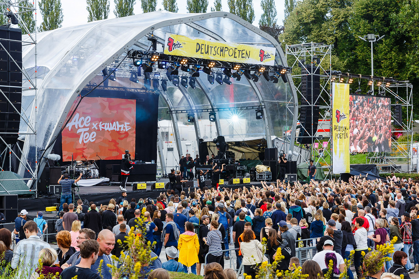 Am Samstag bereichern SDP das Programm. Die Spandauer gelten als Phänomene der deutschsprachigen Musiklandschaft. Mit ihrem genreübergreifenden Kreativmix lassen sie sich in keine Schublade stecken. Gleiches gilt für Clueso, der bereits zum dritten Mal dabei ist. Für frischen Wind sorgt DeutschPoeten-Neuling Romano, der mit Metalkutte, geflochtenen Zöpfen und Electro-Rap Aufsehen erregt.