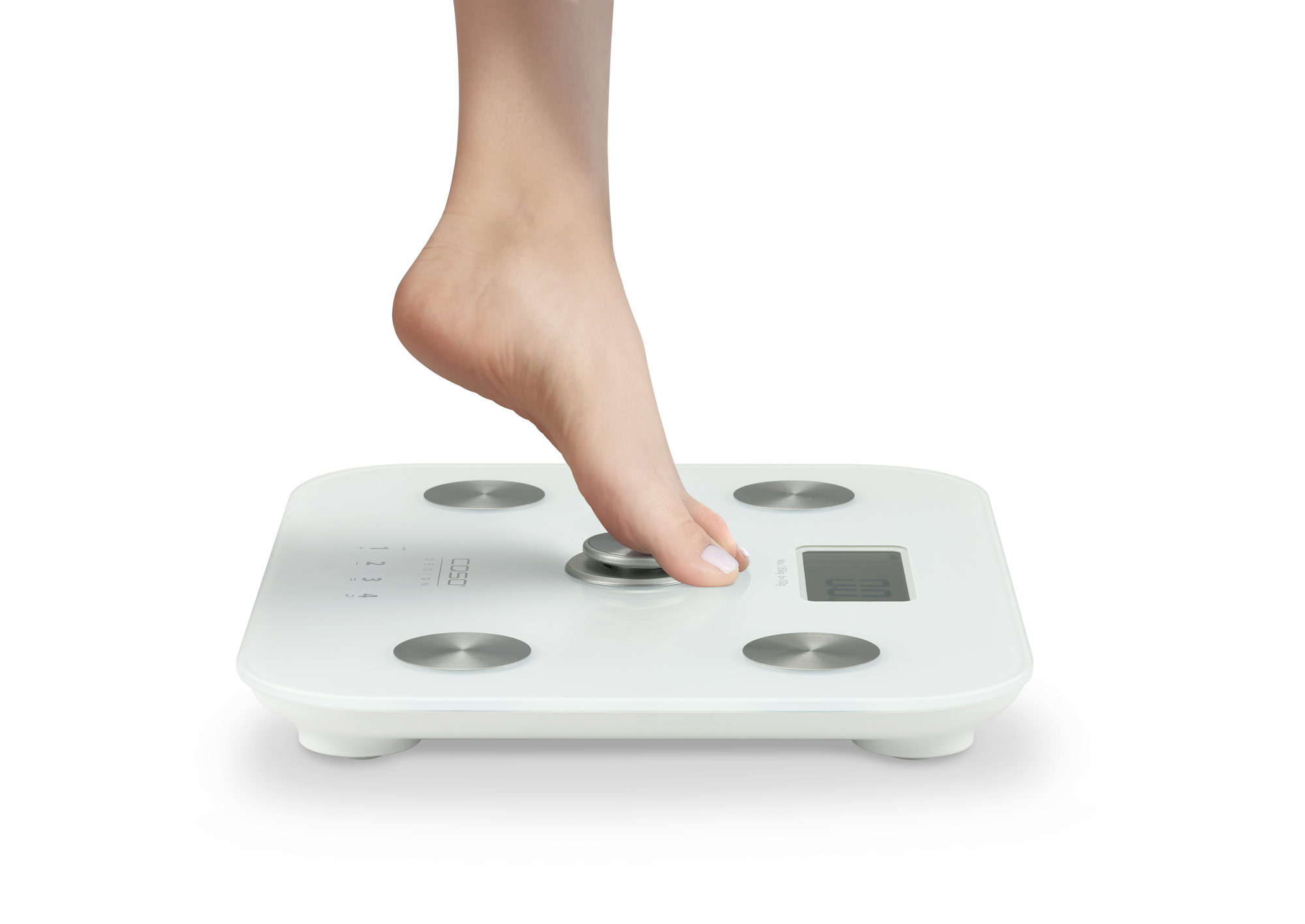 Die neue Personenwaage Bodyenergy Fit von Caso Design erfasst neben dem Körpergewicht auch weitere wichtige Körperwerte. Fünf verschiedene Messungen ermöglichen eine genauere Analyse der eigenen Konstitution: Neben der Knochendichte werden der Körperwasser- und Körperfettanteil, der Muskelanteil sowie der BMI ermittelt. Diese Werte liefern wertvolle Anhaltspunkte für eine gezielte Verbesserung der körperlichen Fitness – und das ganz ohne den Einsatz von Batterien.