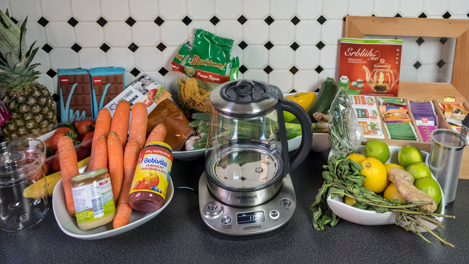 Mit dem Gastroback Design Tea & More Advanced hält ein praktischer und vielseitig einsetzbarer Wasserkocher Einzug in die Küche. Das elegante 3 in 1 Gerät dient als automatischer Tee- und Wasserkocher sowie als Präzisionsgarer. Neben der perfekten Temperatur für jede Teesorte liegt bei diesem Gastroback-Produkt dank seines im Lieferumfang enthaltenen Gareinsatzes die Betonung auf „&More“. So wird der Wasserkocher zu einem Küchengerät, mit dem sich auch Suppen, Fondues und Babynahrung ohne viel Aufwand zubereiten lassen.