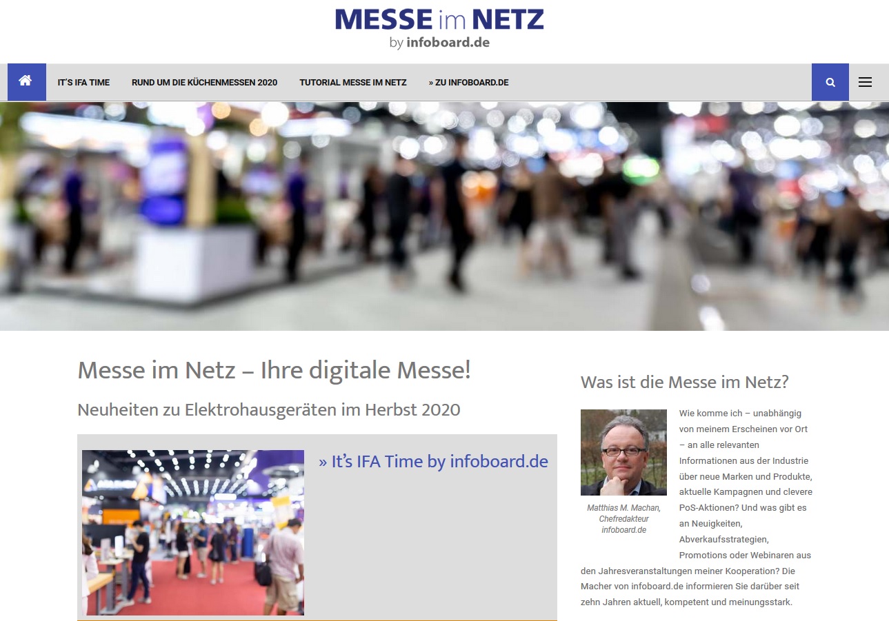 Jetzt holen wir die Herbst-Messen für den Handel ganz bequem und komfortabel auf sein Endgerät: Mit unserer neuen www.infoboard.de/messe-im-netz/ haben wir unser journalistisches Angebot für den Handel in dieser Woche nach gut zwei Monaten Vorlauf um eine virtuelle Messe erweitert.