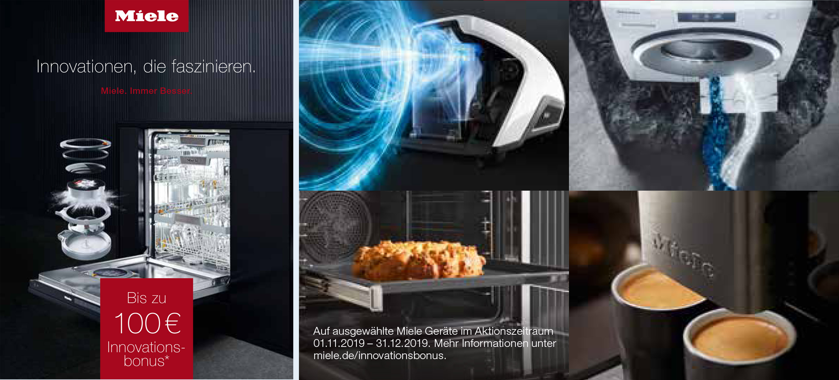 Die Aktion gilt ausschließlich für Geräte aus dem Bonus-Programm, die im Fachhandel oder im Online-Shop von Miele gekauft wurden. Der Aktionszeitraum läuft vom 1. November bis zum 31. Dezember 2019 und gilt nur für Deutschland. Informationen zu den Modellen und den Teilnahmebedingungen stehen im beigefügten » Folder.
