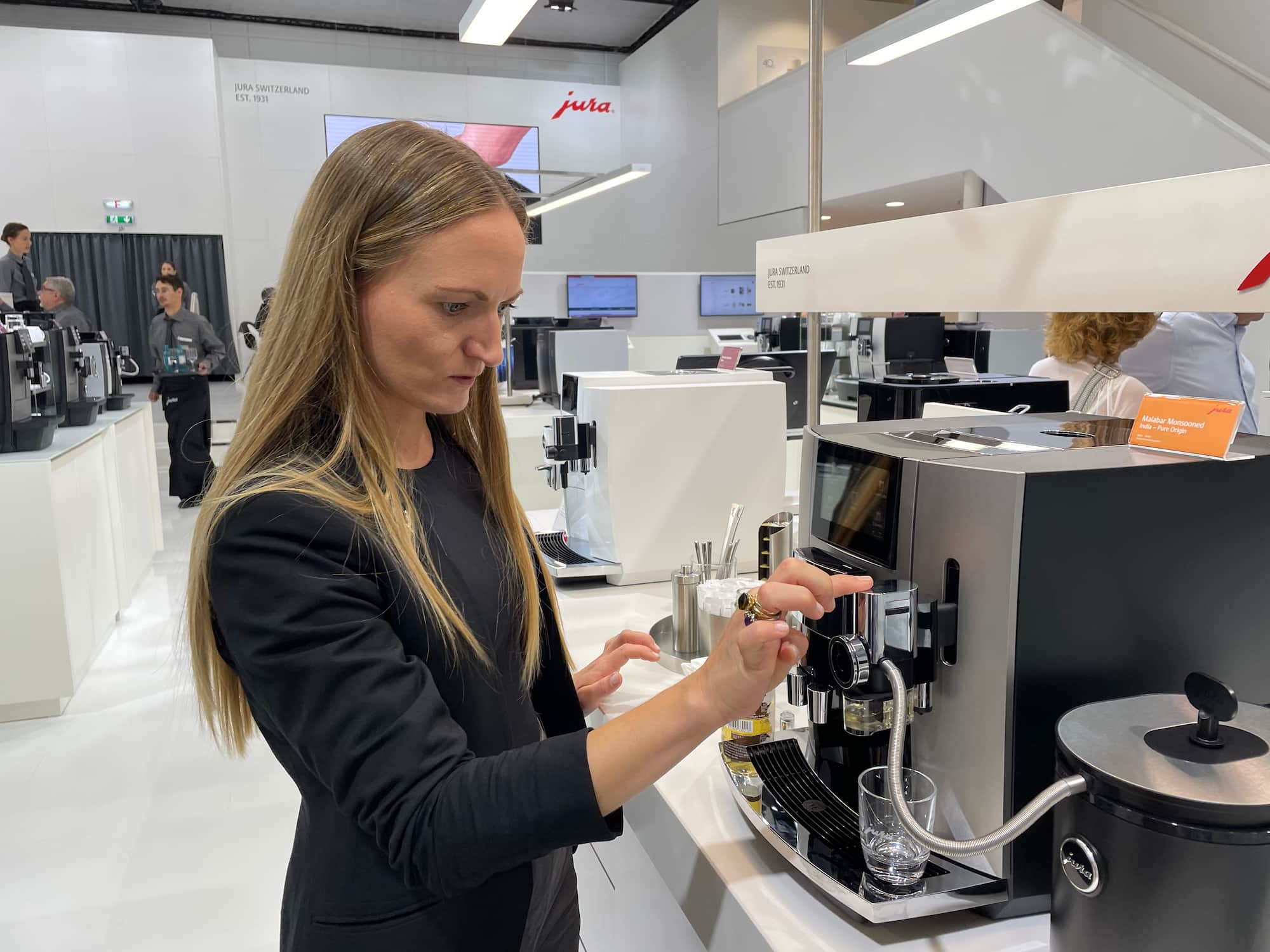 Mandy Gieseler, PR & Kommunikation bei Jura, erläutert die Vorzüge der neuen J8.