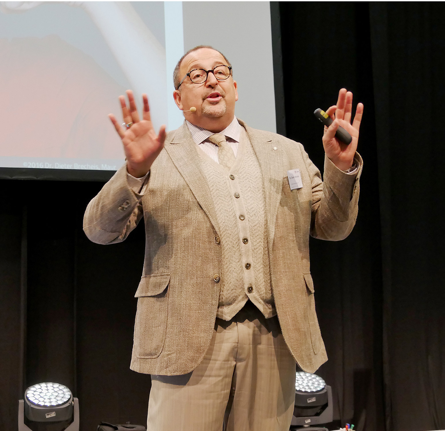 Gastreferent Dr. Dieter Brecheis erläuterte in seinem Vortrag „Don’t Hurry – Be Happy“ die vier „matchentscheidenen“ Faktoren der heutigen Zeit: Disruption, Komplexitätszunahme, Entstrukturierung und Beschleunigung sowie Selbstoptimierungszwang. Fürs Überleben im digitalen Hier und Jetzt gibt Brecheis die Losung aus: „Lass Dich nicht hetzen, sondern gehe mit Bedacht nach vorn!“