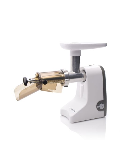 Die Jupiter Frucht-/Beerenpresse ist unschlagbar in der Herstellung von naturtrüben Säften und Mus aus Trauben, Beeren und Äpfeln. Auch mit Kernen und Haut macht der Fruchtpress-Vorsatz kurzen Prozess. Die Jupiter Frucht-/ Beerenpresse besteht aus einem Antriebsgerät, in dem ein 150 Watt leistungsstarker Motor in einem Gehäuse aus schlagfestem ABS-Kunststoff arbeitet. Über den Bajonettverschluss wird der Beerenpressaufsatz befestigt, der auch gegen einen anderen Vorsatz ausgetauscht werden kann.