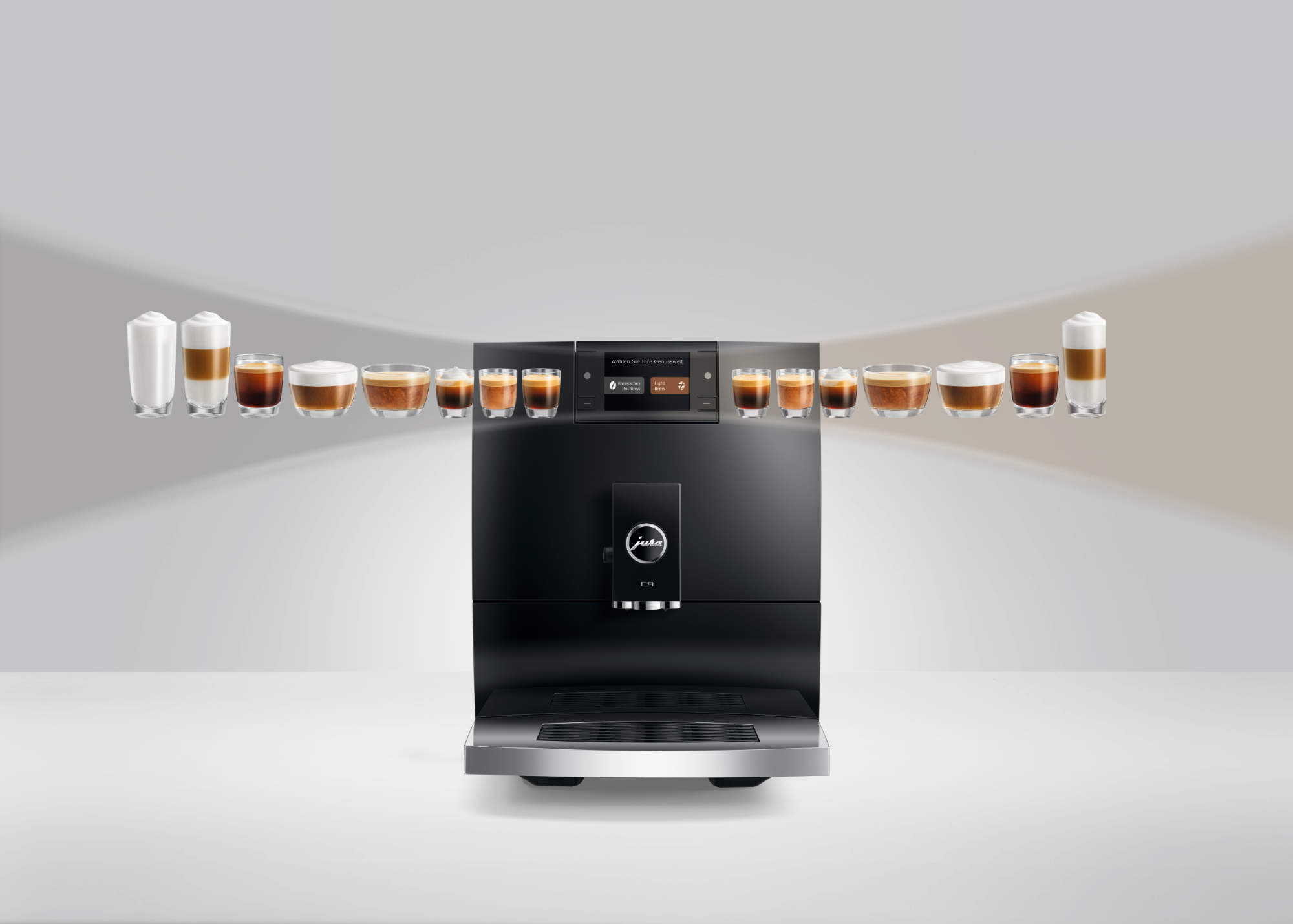 C9: Kompakter Vollautomat mit Fokus auf Hot Brew und Light Brew. Bot 17 Spezialitäten auf kleinem Raum und richtete sich an designorientierte Haushalte mit begrenztem Platzangebot. UVP: 899 Euro