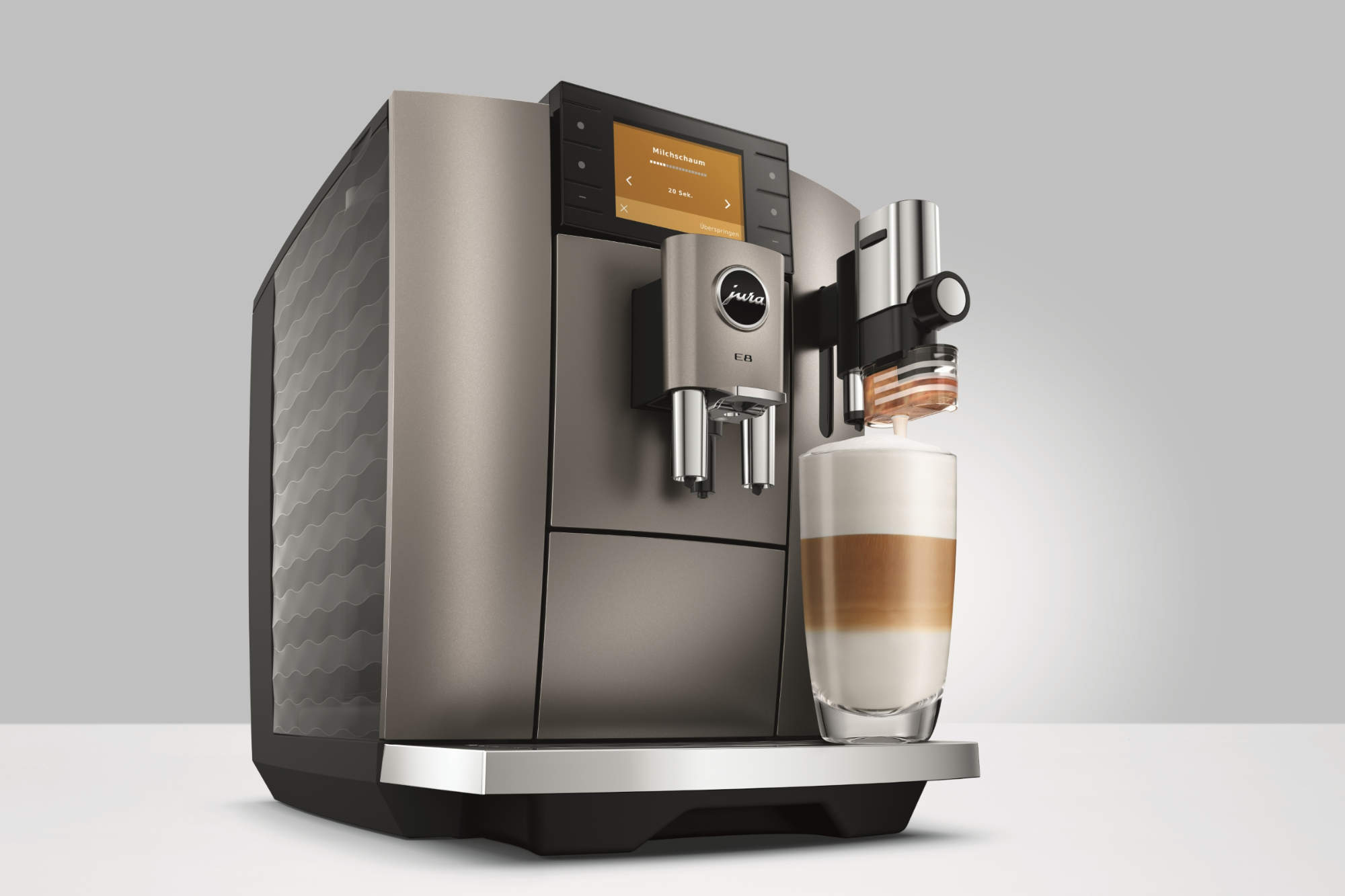 E8 (5. Generation): Weiterentwicklung des meistverkauften JURA-Modells. Unterstützte drei Genusswelten mit 27 Spezialitäten. Neue Funktionen wie der Coffee Timer und der Quality Assistant erhöhten den Bedienkomfort und erleichterten die Pflege. UVP: 1.249 Euro
