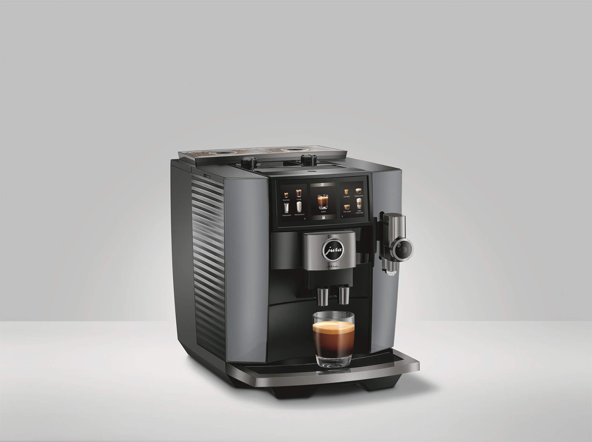 J10 twin: Modell mit zwei separaten Präzisionsmahlwerken für die parallele Nutzung verschiedener Bohnensorten. Unterstützte alle vier Genusswelten mit insgesamt 46 Spezialitäten. Zielgruppe waren Nutzerinnen und Nutzer mit hohen Ansprüchen an Vielfalt und Individualisierung. UVP: 2.249 Euro