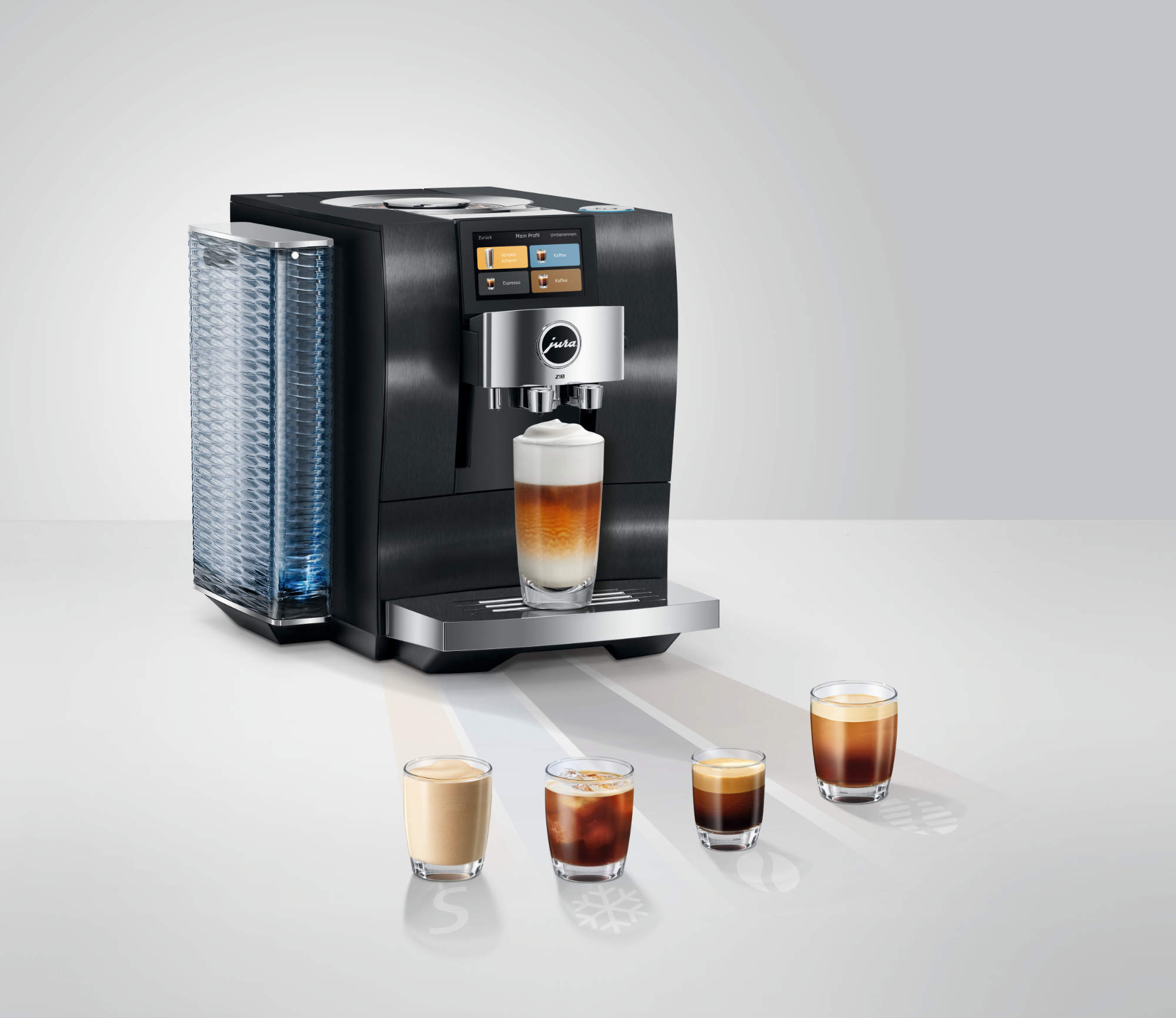 Z10 (2. Generation): Hochwertiger Premium-Vollautomat mit 51 Kaffeespezialitäten aus allen vier Genusswelten. Neue Features wie der Coffee Timer (App-gesteuerte Vorbereitung), ein Koffeinregler sowie eine Schokoschaum-Funktion erweiterten das Anwendungsspektrum. UVP: 2.499 Euro
