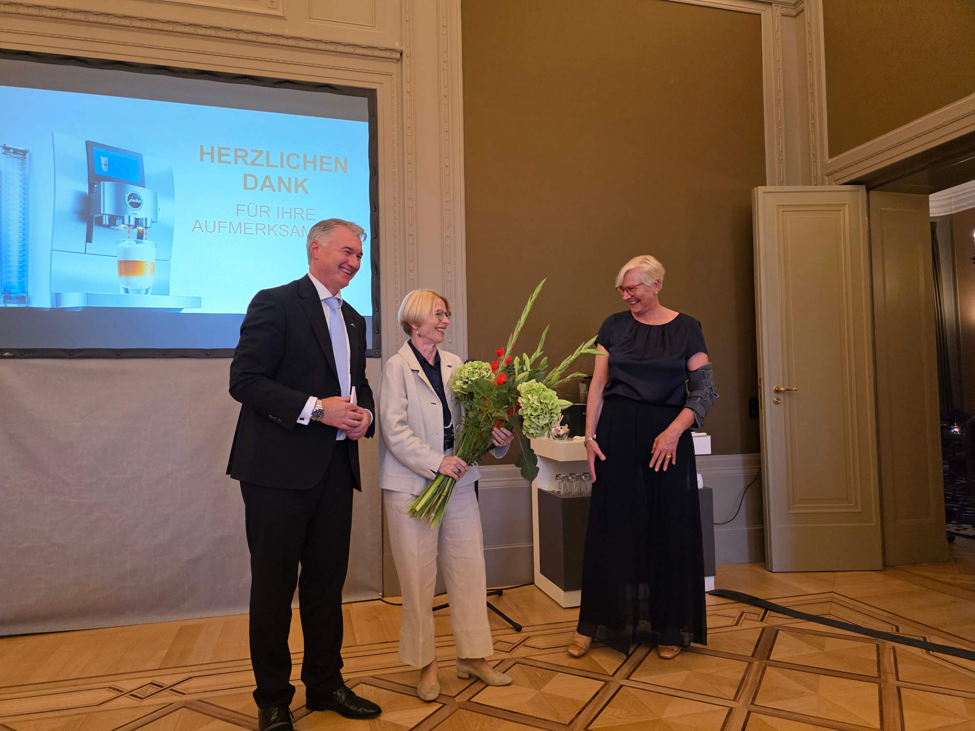 Sichtlich gut gelaunt: (v.l.) Horst Nikolaus, Livia Leu und Wiebke Reineke beim Sneak Preview der neuen Kaffeemaschinen zur IFA 2025. Fotos: G. Wagner