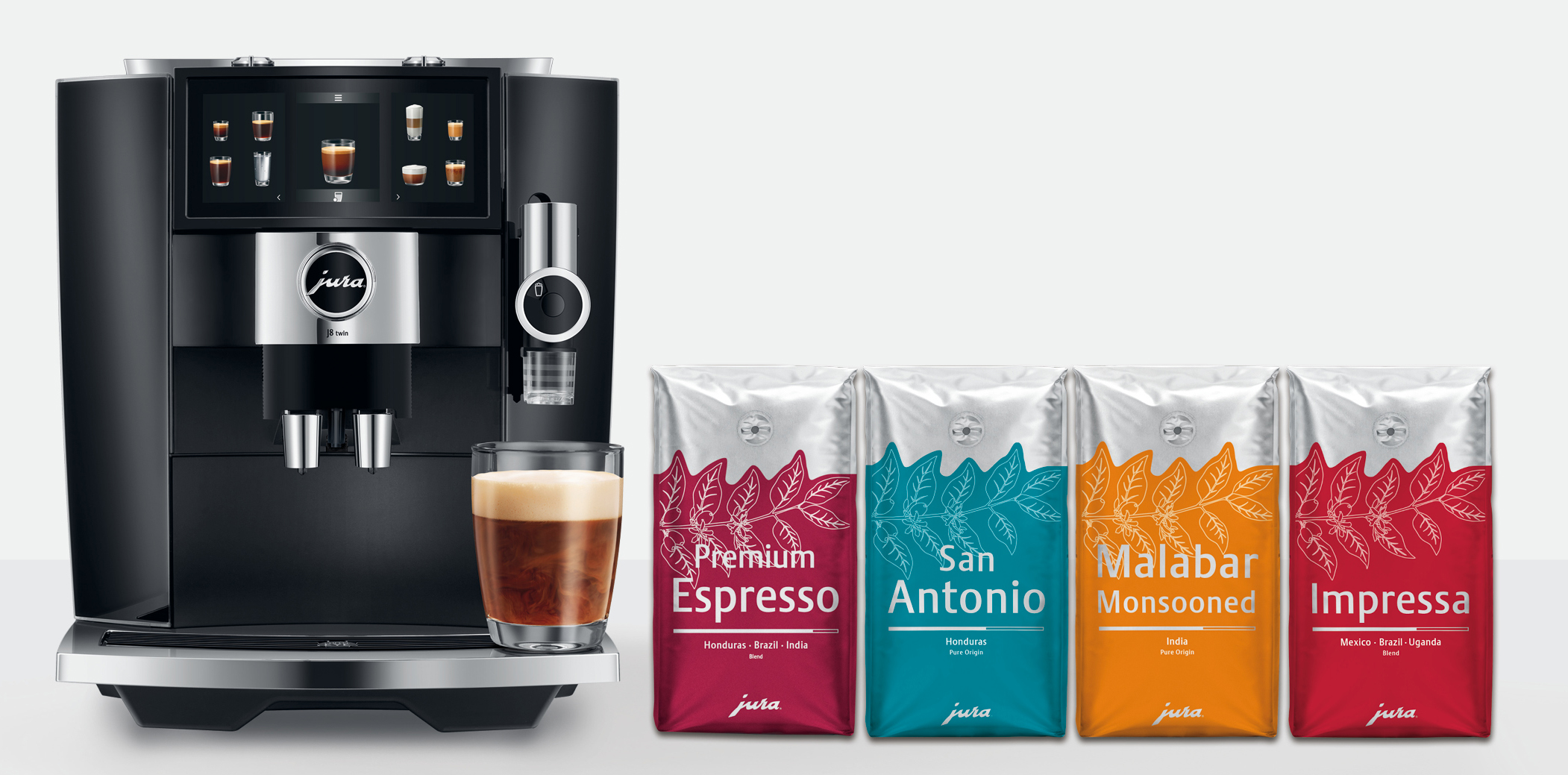 Endverbraucher, die bis einschließlich 31. März 2024 eine J8 twin in Diamond White oder Diamond Black erwerben, erhalten einen gratis 1 kg Vorrat edler Kaffeebohnen, bestehend aus den Jura-eigenen Sorten Premium Espresso, San Antonio, Malabar Monsooned und Impressa.