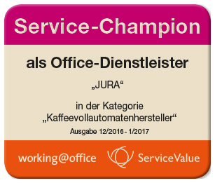 „Mit dem Award ‚Service-Champion im Office‘ sehen wir uns in unseren Bemühungen für eine exzellente und reibungslose Kaffeeversorgung im Büro bestätigt“, freut sich Frank Göring, Geschäftsführer der Jura Gastro Vertriebs-GmbH über die Preisverleihung. Und: „Zuverlässiger Service und maßgeschneiderte Lösungen für Kaffeeprofis – insbesondere im Büro – ist fester Bestandteil unserer Firmenphilosophie. Mit Tagesleistungen von 30 bis 300 Tassen haben wir für nahezu jedes Büro die ideale Maschine im Portfolio.“