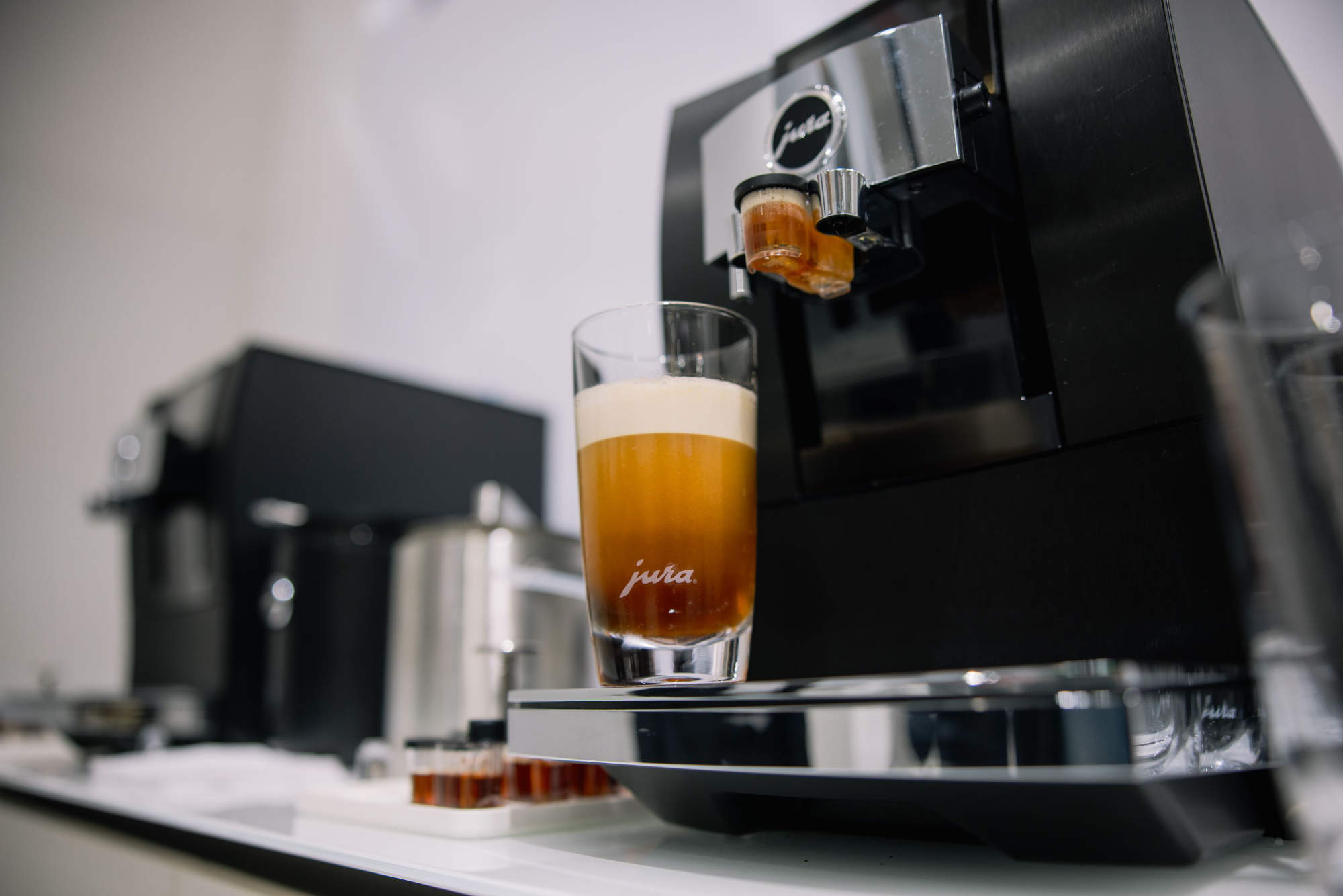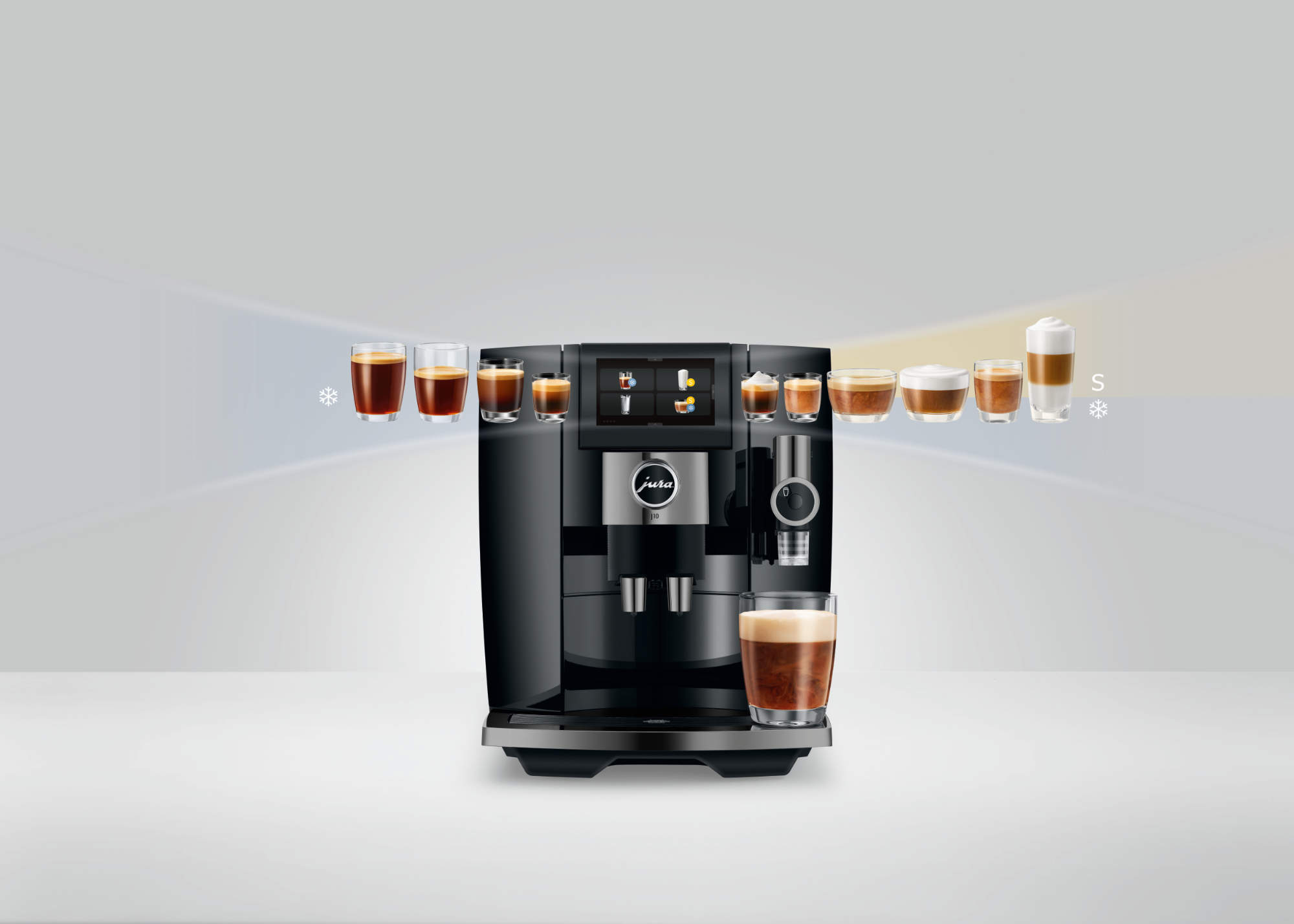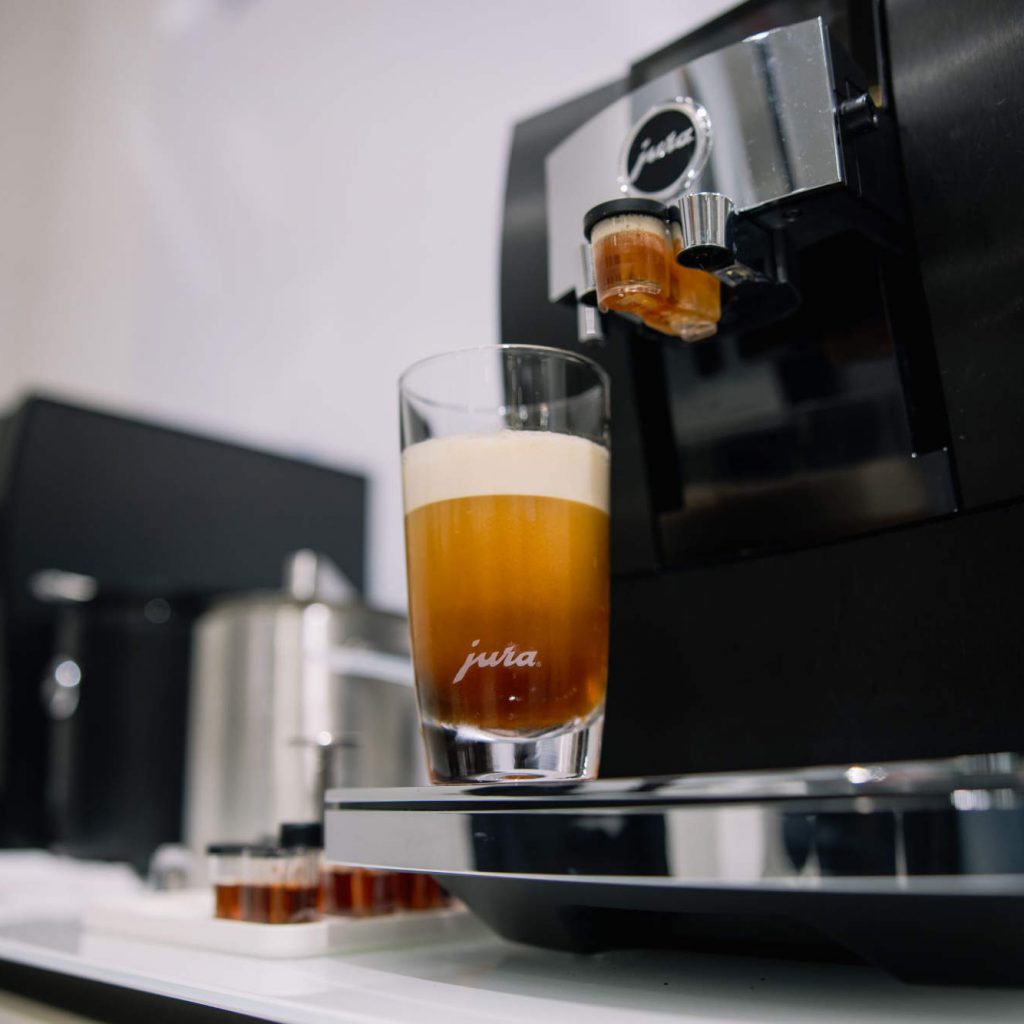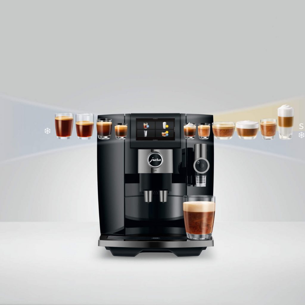 Unser neuer Kaffee-Liebling indes ist ein wahrer Alleskönner: Die jetzt auf der IFA erstmals präsentierte J10 vereint edle Hochwertigkeit mit zeitloser Eleganz. Sie verfügt über die jüngste Generation des P.A.G.+-Präzisionsmahlwerks und setzt mit der Funktion Aroma-Kontrolle, eine aktive Mahlgradüberwachung, neue Maßstäbe. Die J10 kann sowohl die beliebten Cold-Brew-Trendspezialitäten zubereiten als auch süße Verführungen per Sweet-Foam-Funktion zaubern. In edlem Piano Black kommt die überzeugende Formensprache der J10 in der für Jura typischen Kombination von Klarheit und Symmetrie perfekt zur Geltung.