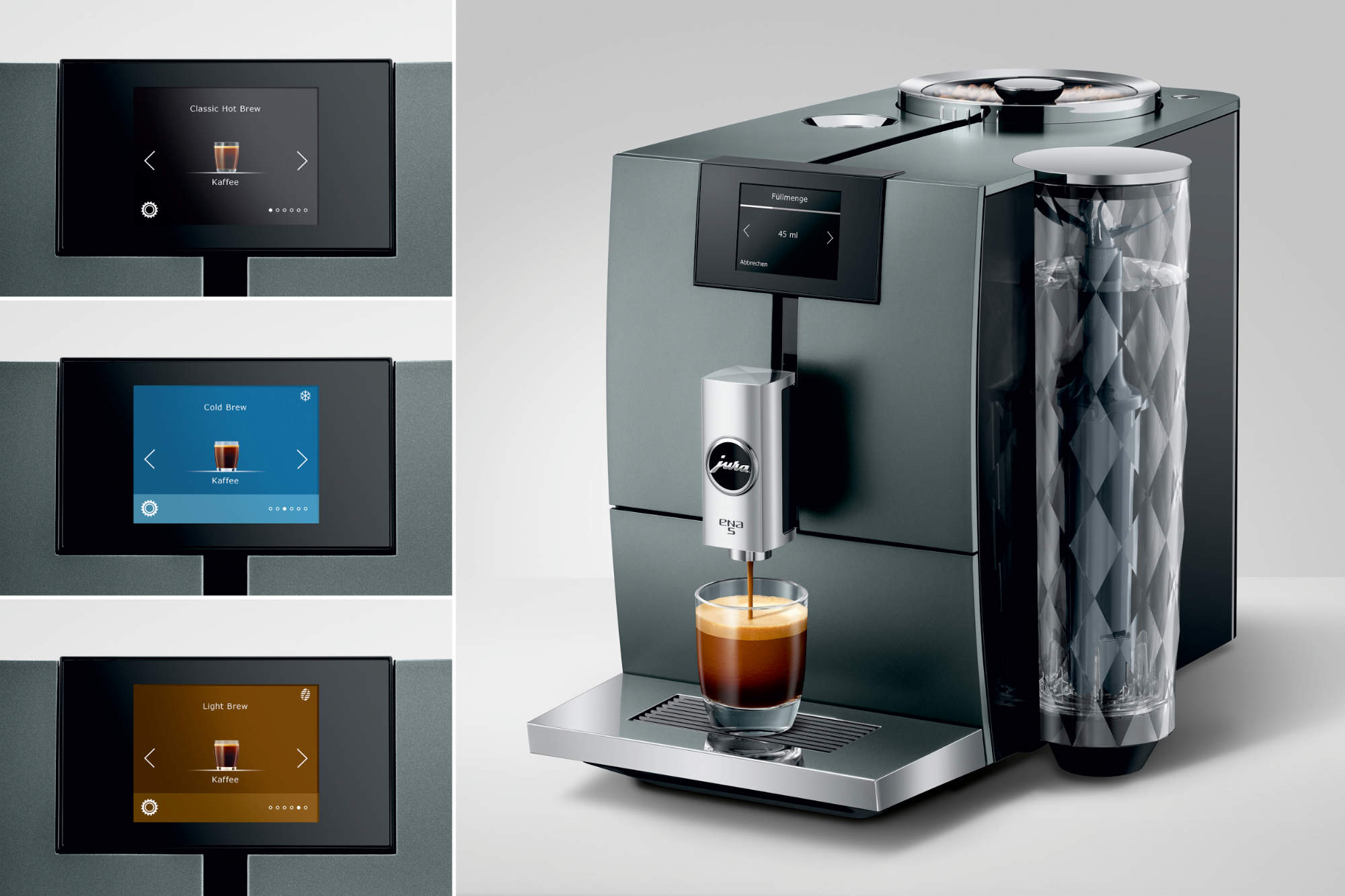 Die ENA 5 steht dabei für stilvollen Kaffeegenuss in jedem Moment und eine abwechslungsreiche Auswahl – mit klassischem Hot Brew, erfrischendem Cold Brew und harmonischem Light Brew. Der Light Extraction Process sorgt dafür, dass die Spezialität bei ca. 60 °C gebrüht und dabei mit weniger Kaffeepulver zubereitet wird: der ultimative Ready-to-Drink-Genuss eben. Mit ihrer klaren, geradlinigen Form und der edlen Farbvariante Night Inox definiert der Vollautomat einen neuen Standard in der Kompaktklasse, der den technischen Anspruch, die Genuss-Vielfalt und ein stilsicheres Design vereint.