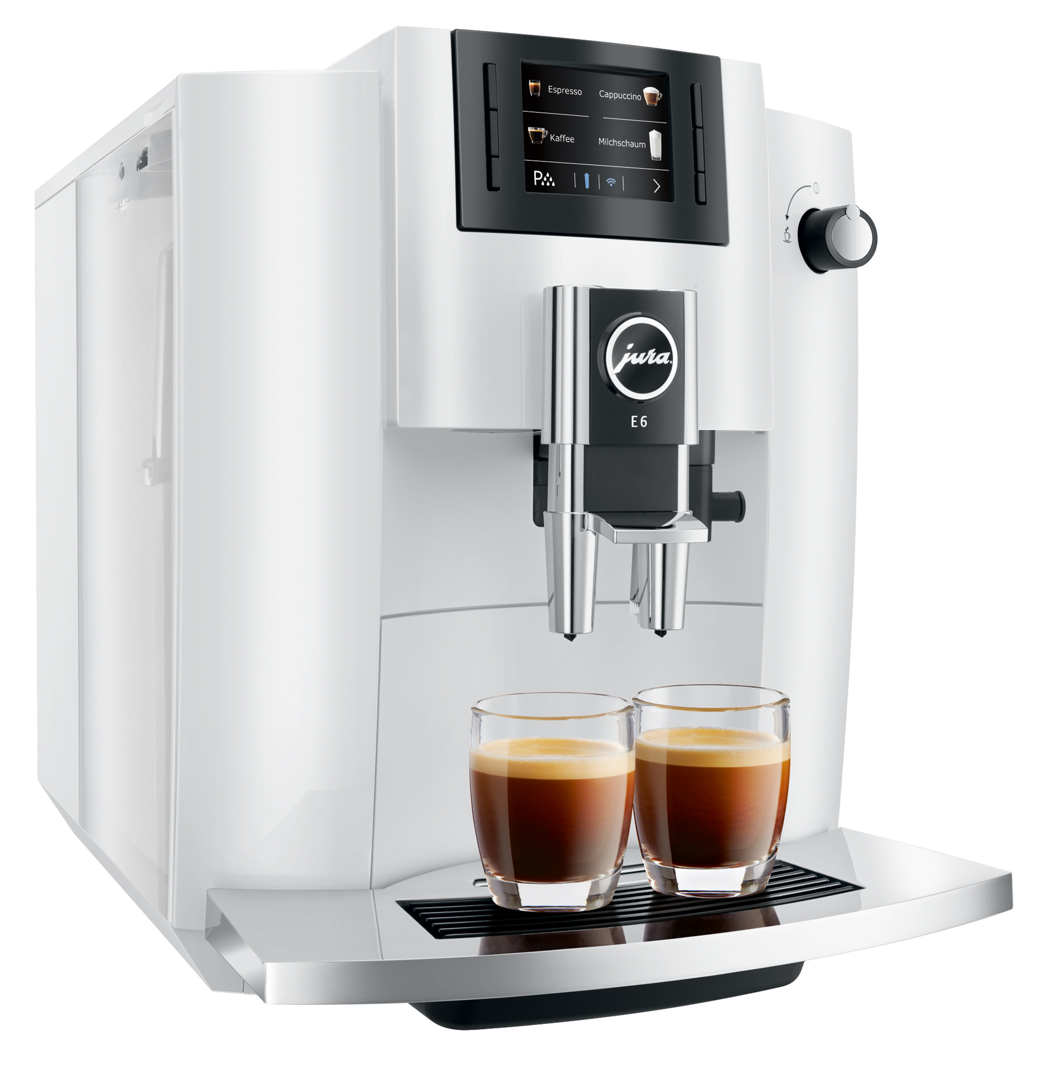 Der Jura Kaffeevollautomat E6 Modell 2020 steht in den hocheleganten Farbvarianten Platin, Piano White und Piano Black zur Verfügung.