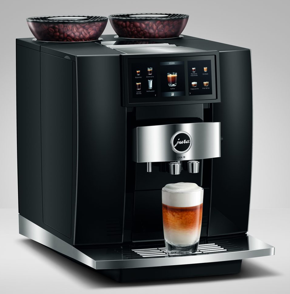 Der Jura Kaffeevollautomat Giga 10 verfügt über zwei Bohnenbehältern, zwei Mahlwerke, Cold Extraction Process, Panorama Panel und intuitives Bedienkonzept.