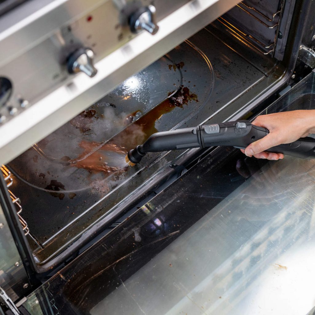 Dampfreiniger sind wahre Alleskönner und entfernen selbst hartnäckige Verschmutzungen von verschiedenen Oberflächen – und das ganz ohne den Einsatz von Chemie. Mit Hilfe passender Aufsätze, wie einer flexiblen Handdüse für gewölbte Flächen, lassen sich Waschbecken und Badewannen gut reinigen. Die XXL-Fugendüse mit einer extra langen Bürstenleiste erleichtert die Reinigung von Ecken und Fugen, eine Powerbürste löst selbst hartnäckige Verschmutzungen an Backofen und Grill. Dank Fensterdüse mit flexibler Abziehlippe können auch bodentiefe Fenster problemlos gereinigt werden.