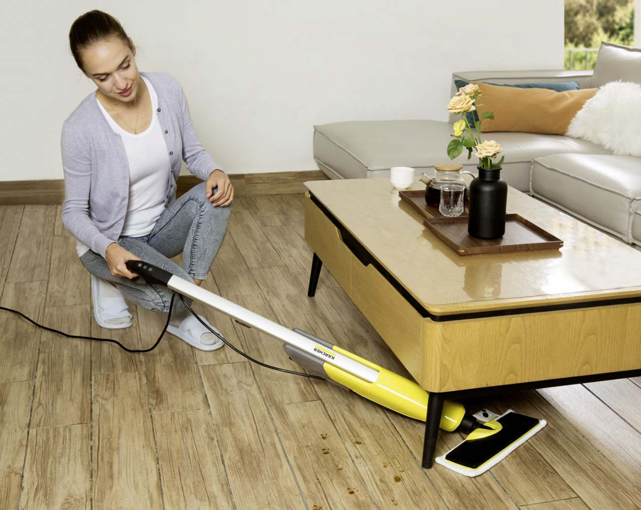 Der Kärcher Dampfmopp SC 2 Upright EasyFix eignet sich für die hygienische Reinigung von Hartböden. Der einfach zu handhabende Mopp beseitigt bei gründlicher Anwendung bis zu 99,999% der Coronaviren und 99,99% aller haushaltsüblichen Bakterien auf gängigen Hartflächen – ganz ohne Chemie.