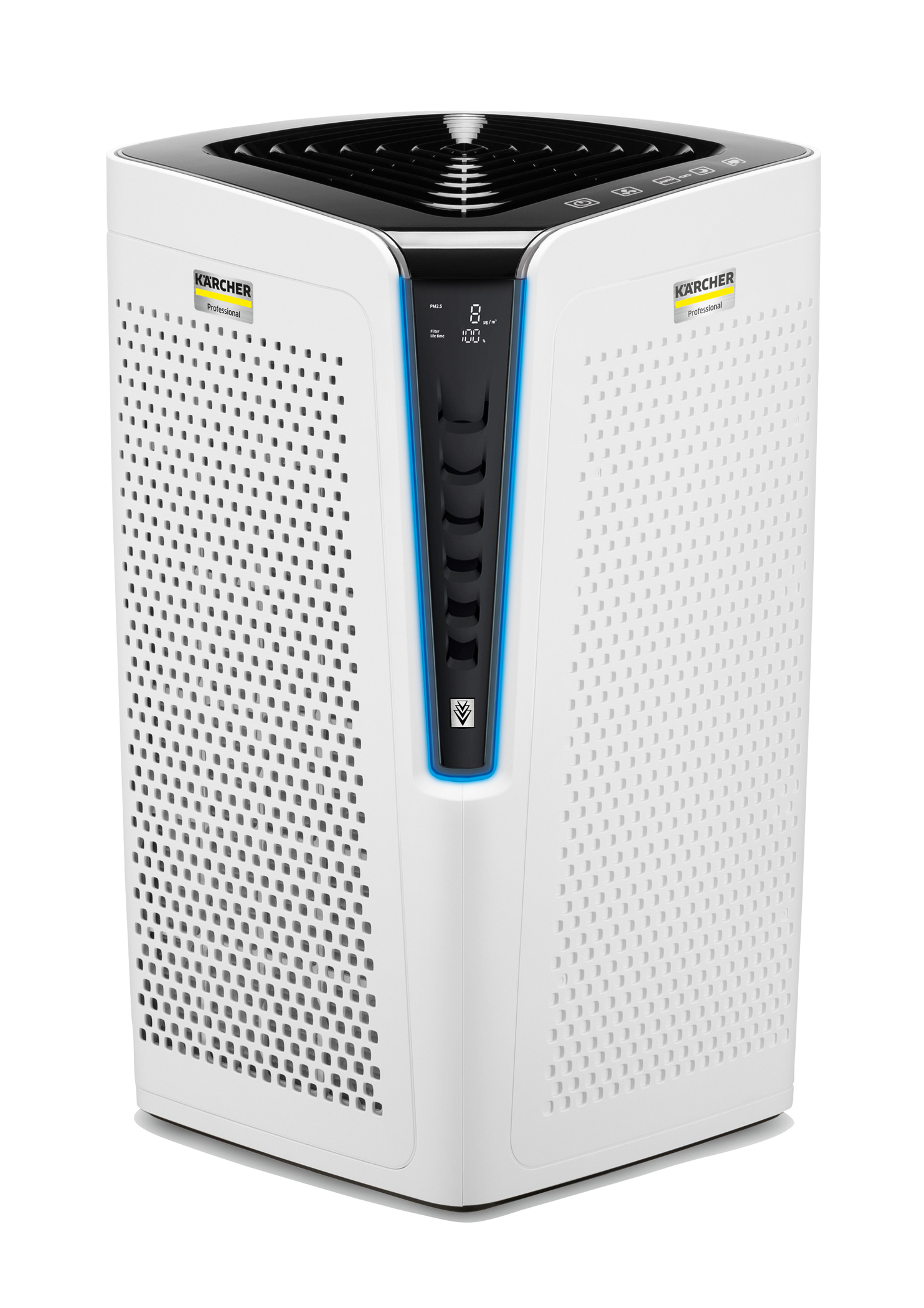 Der Kärcher Luftreiniger AF 100 reinigt die Luft in einem 100 qm großen Raum innerhalb von 20 Minuten und hält bis zu 99,98 % aller Partikel zurück.