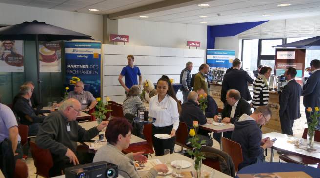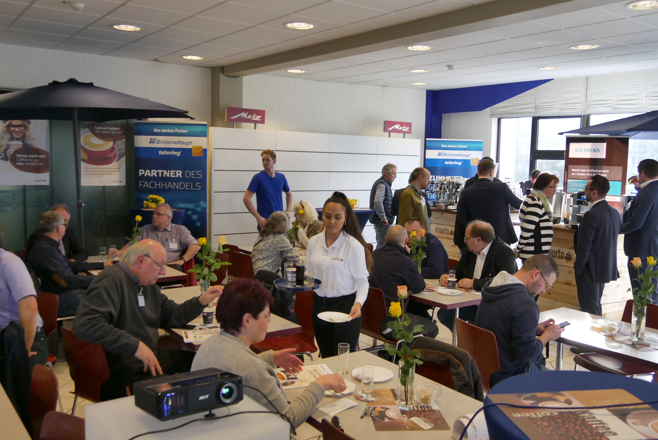 Zahlreiche Konzeptpartner waren in Frechen vor Ort, um den Händlern ihre Produktwelt näher zu bringen: neben den bekannten Playern Jura, Miele, Nivona und Siemens auch die italienische Siebträger-Manufaktur QuickMill, die „Kölner Kaffeemanufaktur“ mit Inhaber Georg Hempsch sowie die Mit-Initiatoren des „esperto“-Konzeptes Niklas Geuer (EP: Geuer) und Wolfgang Caspari, die seit Mai 2017 auf der Hauptstraße in Frechen höchst erfolgreich ihren „esperto“-Piloten betreiben.
