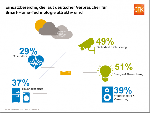 Viel Raum nimmt bei der BSH mittlerweile auch die Vernetzung, geleitet von Jan Philipp Dörner, ein. Ob sich daraus tatsächlich ein richtig großes Geschäft entwickeln wird, ist aktuell noch nicht wirklich ersichtlich. „Aber jetzt nicht daran zu arbeiten wäre ein großer Fehler“, springt Fridolin Weindl von der PR-Abteilung der Münchener bei. Also wird in Apps und Anwendungsmöglichkeiten investiert. Der reale Kaufwunsch daran ist aber bei den Konsumenten noch nicht ganz angekommen, auch wenn das grundsätzliche Interesse daran groß ist. Das zeigt auch eine jüngste Umfrage der Nürnberger GfK, die zu dem Schluss kommt, dass die Vernetzung aktuell vor allem noch zu kostspielig sei. (siehe Charts: GfK)