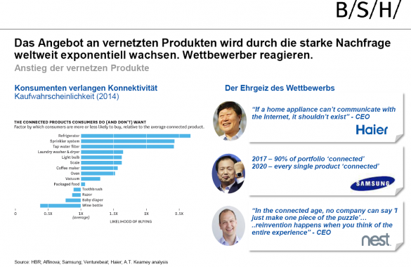 Ob Produktentwicklung, Vermarktung oder Service: Die BSH Hausgeräte stellt die Konsumentenbedürfnisse noch stärker in den Mittelpunkt ihrer Strategie. Der Einfluss der Digitalisierung spielt dabei eine immer wichtigere Rolle. Spielte in der Vergangenheit der Handel den Vermittler zum Konsumenten, erfolgt diese Kommunikation immer öfter und immer stärker (ohne Umwege über den Handel) direkt mit dem Verbraucher.