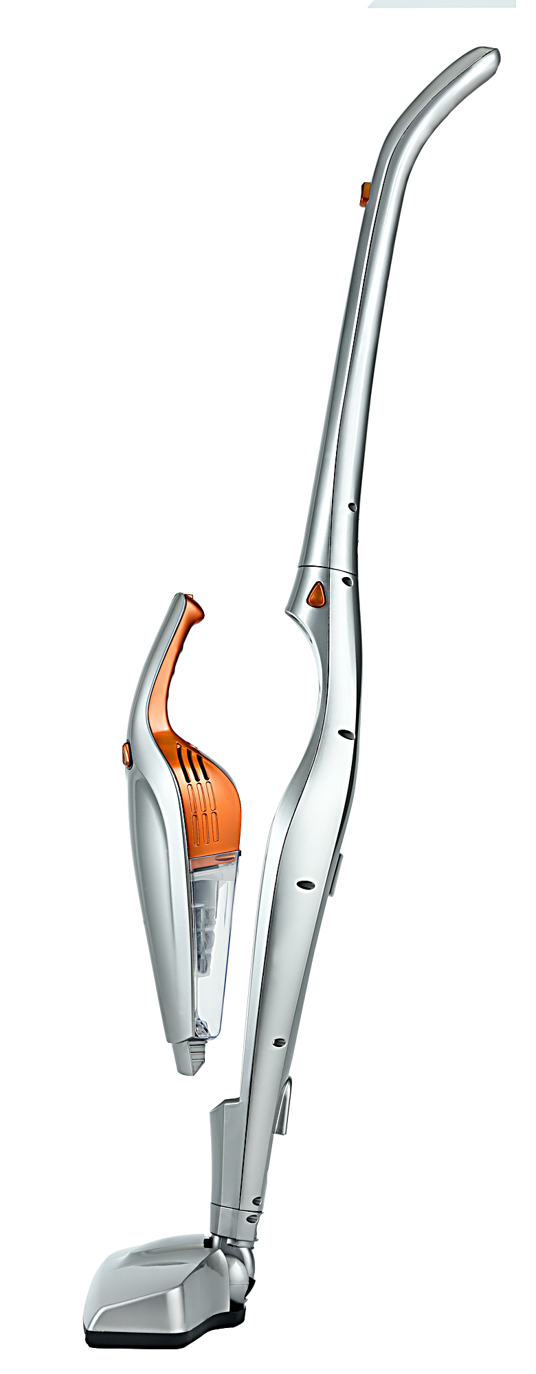 Der Kalorik Akkustaubsauger TKG SKV 1002 ist ein 2 in 1 Gerät, das als Stielsstaubsauger und als Handstaubsauger verwendet werden kann. Der 9,5 Volt starke Sauger hat eine Leistung von 85 Watt. Er ist in drei Stunden voll aufgeladen und einsatzbereit. Das Fassungsvermögen beträgt 0,5 Liter. Mit drehbarem Griff kommt er mühelos in jede Ecke. Die elektrische Bodendüse verfügt über eine 360° Drehgelenkverbindung.