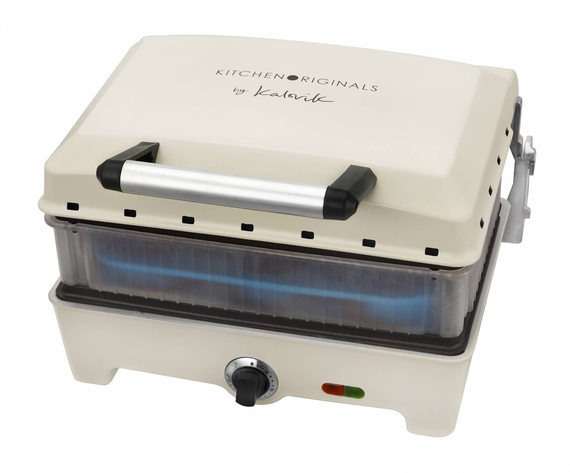 Der Kalorik Backofen Home Bakery ist kleine Backofen, handlicher Kontaktgrill und Party- bzw. Bratpfanne in einem Gerät. Er kann Kochen, Backen und Braten. Dabei garantieren Ober- und Unterhitze gleichmäßige Gar-, Back- und Bratergebnisse. Die Backplatten haben Innenraummaße von ca. 268x178x120 mm.