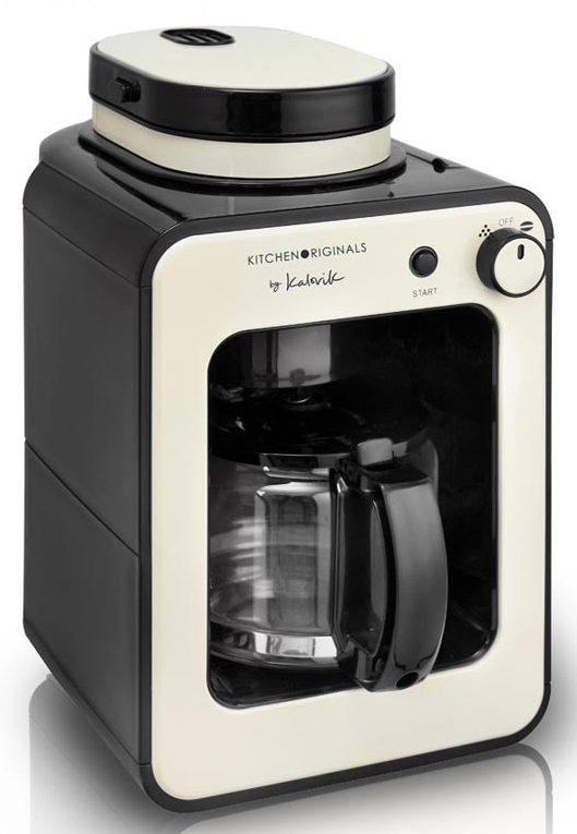 Die Kalorik Kaffeemaschine TKG CCG 1001 KTO ist ein Zweitgerät für Büro, Ferienhaus oder die Zeitwohnung. Mit dem entnehmbaren Kaffeemahlwerk bereitet sie frischen Kaffee aus Bohnen. Die Einstellung auf Kaffeepulver ermöglicht die Verwendung von Kaffeepulver.