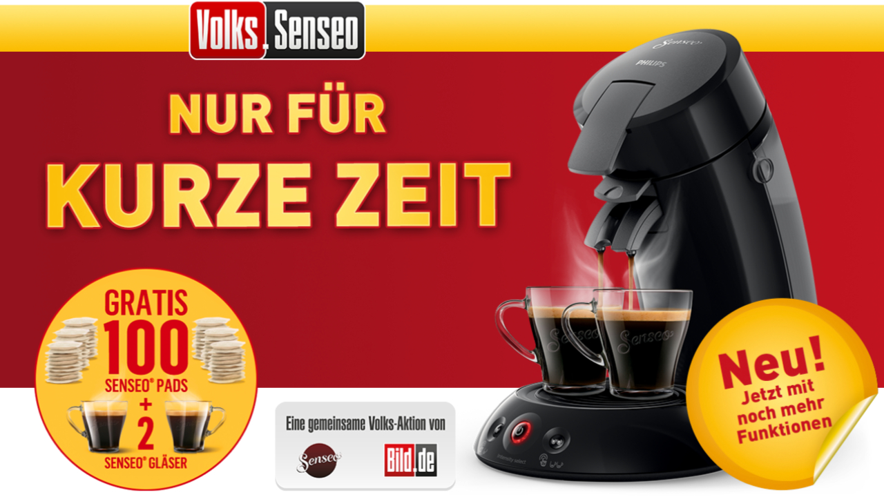 Senseo und Bild.de starten eine gemeinsame Kampagne: Seit dem 15. August und bis zum 31. Dezember ist die Senseo Original jetzt als limitierte Volks-Senseo erhältlich.