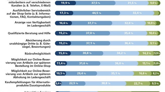 Beratung und Service sind für Online-Shopper von großer Bedeutung. Viele Anbieter machen sich daher Gedanken, wie das Shopping-Erlebnis angenehmer gestaltet und Beratungskompetenz auch online vermittelt werden kann. In Bezug auf den Erfolgsfaktor Versand- und Lieferung gilt: Zwei bis drei Tage Lieferzeit sind (derzeit noch) völlig ok, aber der Kunde möchte wissen, wann genau die Bestellung zu Hause ankommt. Daher ist Transparenz im Lieferprozess das A und O. Kunden wünschen sich immer mehr Flexibilität und die Möglichkeit, den Prozess mit zu steuern, zum Beispiel durch Lieferzeitfenster. In Sachen Retouren steht bei Konsumenten die Einfachheit an erster Stelle. Zudem ist es Verbrauchern bei der Online-Bestellung besonders wichtig, dass sie bei Fragen mit dem Händler in Kontakt treten können.