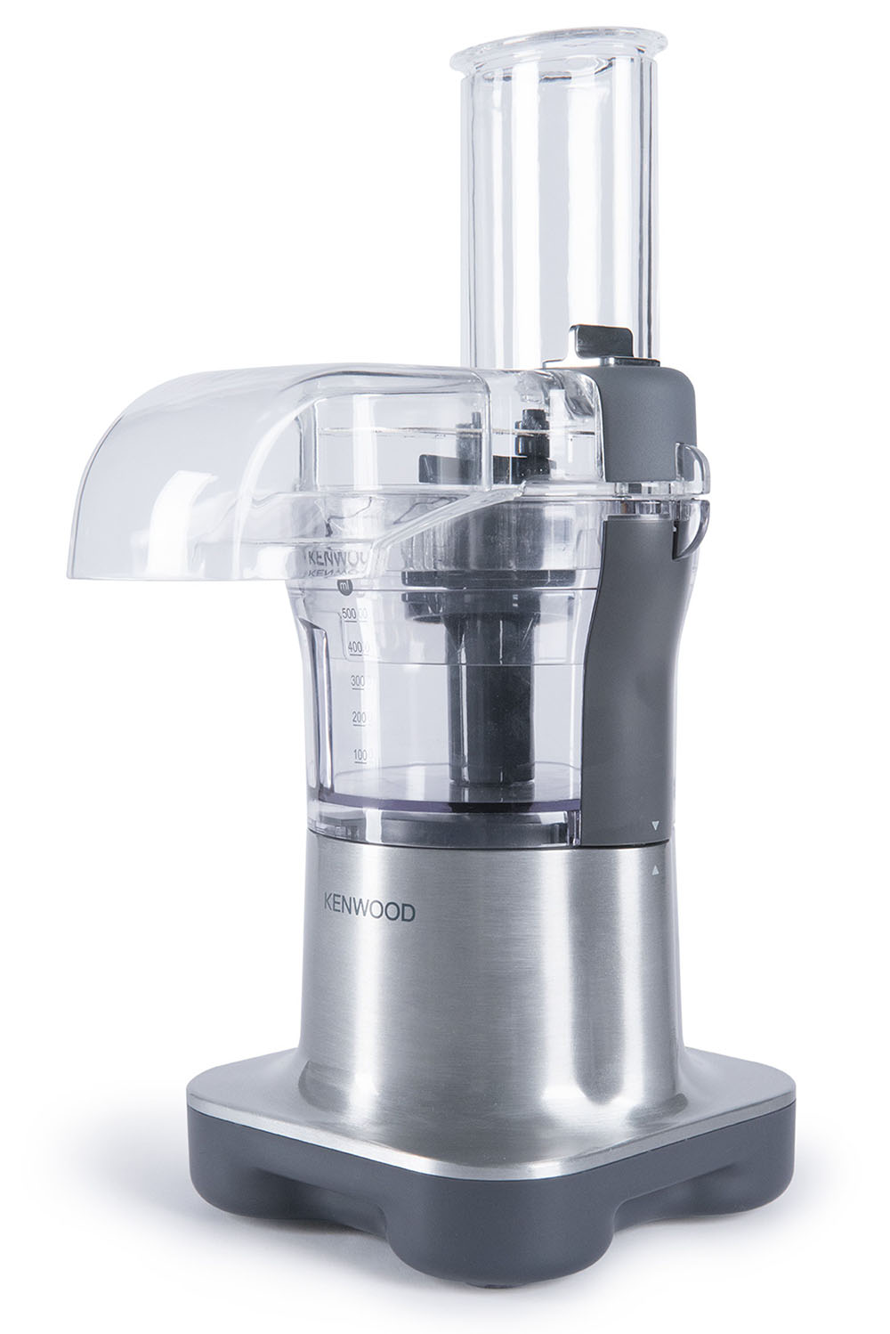 Die Kenwood Küchenmaschine FDM100 Multipro Micro ist kompakt, kriegt alles klein und bringt im Nullkommanichts gesunde Mahlzeiten auf den Tisch. Sie ist der ideale Hilfskoch für die kleine Küche. Das kompakte Multitalent vereint Mini-Kompaktküchenmaschine und Zerkleinerer platzsparend und praktisch in einem Gerät. Ganz groß dagegen ist seine technische Ausstattung: Dank des Aufsatzes mit Schneidescheibe wird das Schneidgut direkt in einen Behälter befördert. Mit der Schneid- und Raspelscheibe verarbeitet die Kenwood Küchenmaschine FDM100 Multipro Micro Beispielsweise Karotten oder Kartoffeln für eine Gemüsesuppe. Das vierflügelige Messersystem Quadblade übernimmt hingegen problemlos das Zerkleinern oder Hacken – zum Beispiel von Nüssen für einen Kuchen. Der leistungsstarke 500-Watt Motor und das massive, silberfarbene Druckguss-Metallgehäuse machen die innere Stärke des Zerkleinerers auch nach außen sichtbar.