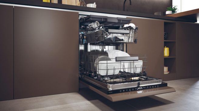 Auch die Spülmaschinen sind mit der hOn App benutzerfreundlich verbunden. Gleichzeitig erfüllen sie mit dem bürstenlosen Invertermotor die Anforderungen der neuen Energieklasse A. Bis zu 17 Maßgedecke finden Platz in dem 60-cm-Einbau-Geschirrspüler, der für ein Spülprogramm nur 9 Liter Wasser verbraucht. Der neue „H“-förmige untere Sprüharm ist mit doppeltem Bewegungsmoment ausgestattet, der die Leistung und die Reichweite während der Spülphase erhöht. Ein zusätzlicher rotierender Sprüharm im unteren Bereich sorgt für Sauberkeit auch bei stark verschmutztem Geschirr.