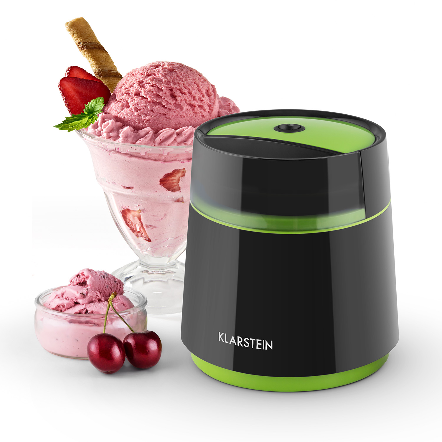 Die Klarstein Bacio Nero Eismaschine sorgt zuhause für eine willkommene Abkühlung : Softeis, Speiseeis, Frozen-Yogurts und Milchshakes. Selbst zubereitet schmeckt Eis nicht nur am besten, es ist auch frei von künstlichen Zusatzstoffen und daher eine gesunde Alternative zum Fertigeis, die schnell und einfach zubereitet ist. In höchstens 30 Minuten rührt die Maschine in modernem Schwarz-Grün klassische oder individuelle Eiskreationen an.