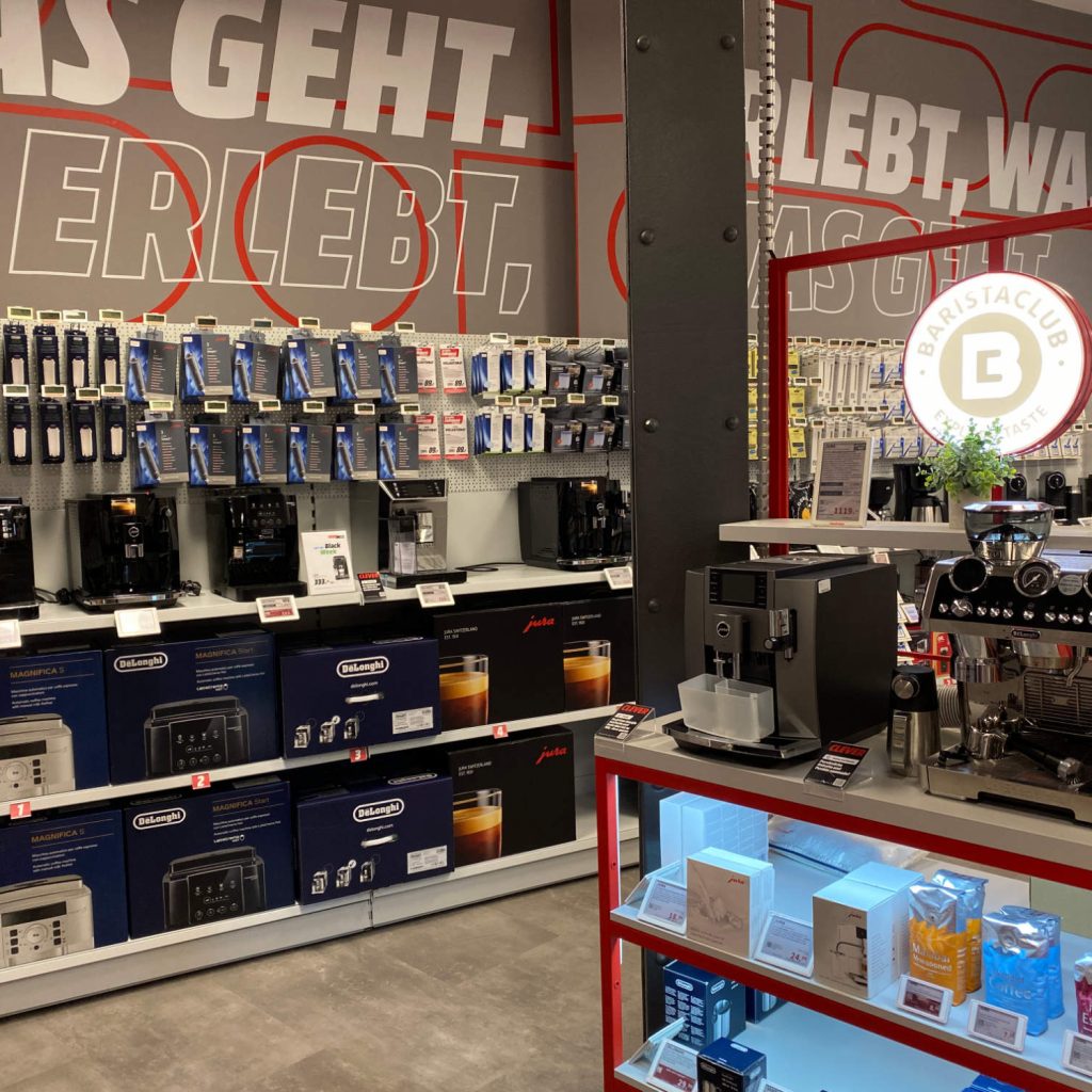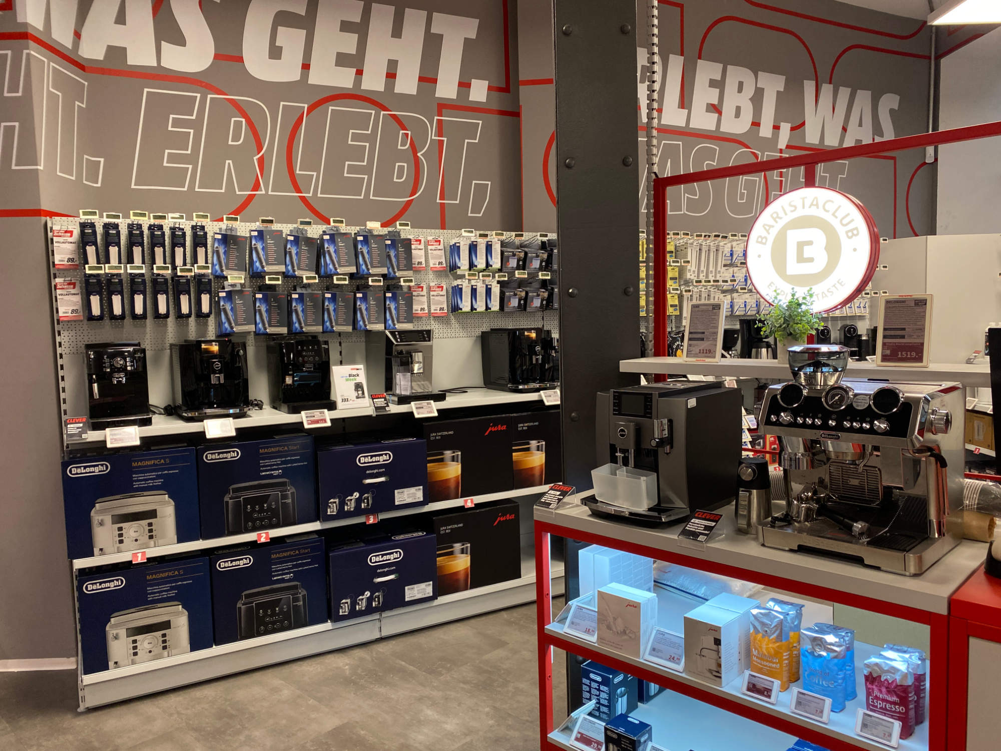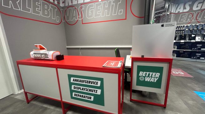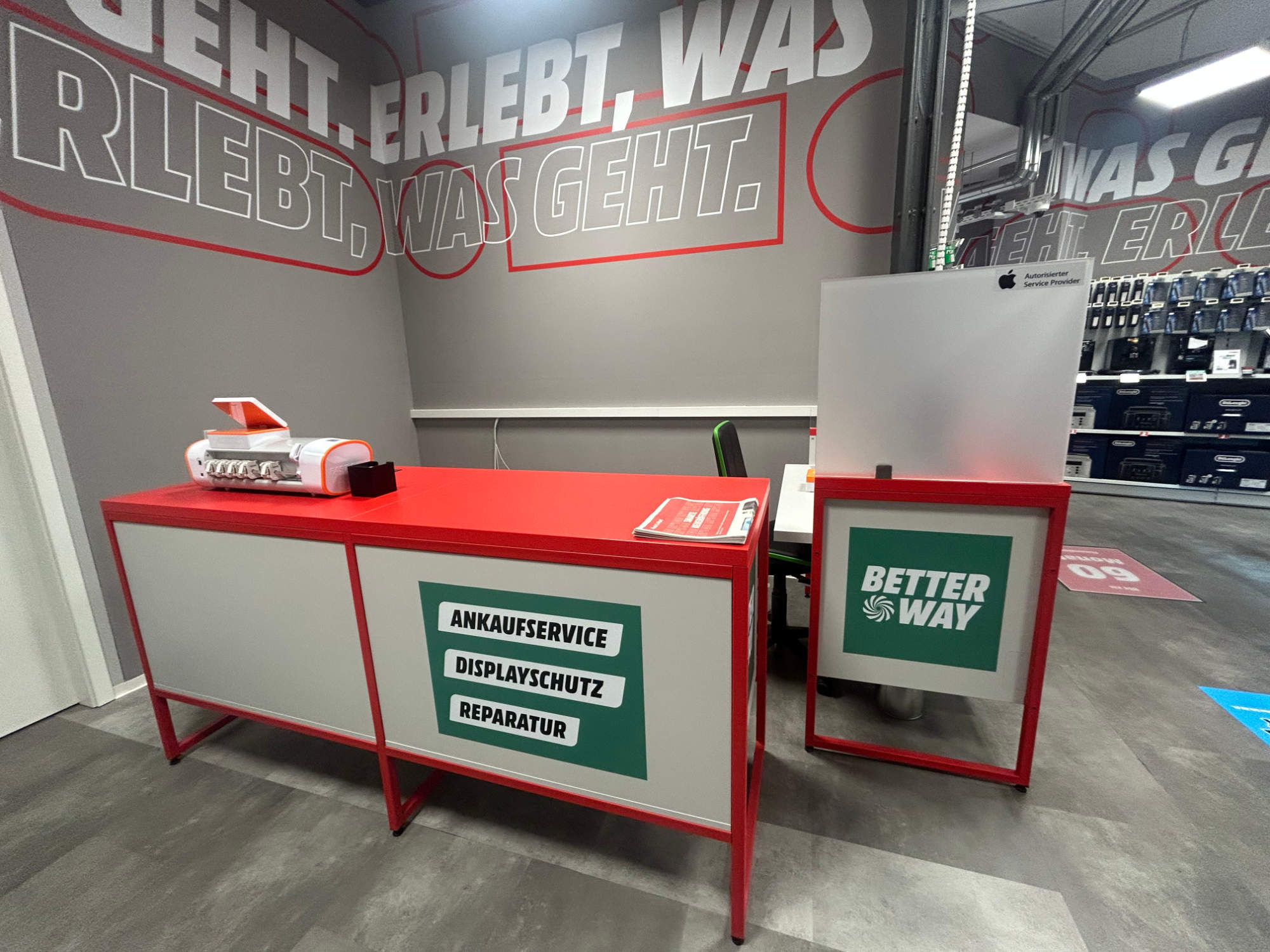 Auch das Service-Angebot ist auf direkte und schnelle Hilfe ausgelegt: Vor Ort kann beispielsweise ein Displayschutz aufs Smartphone aufgebracht werden, an der Smartbar werden kaputte Displays oder schwache Akkus sofort getauscht. Ebenfalls verfügbar: nachhaltige Services wie die Produktmiete mit dem Partner Grover oder der Ankaufservice in Kooperation mit Foxway für nicht mehr genutzte Elektrogeräte.